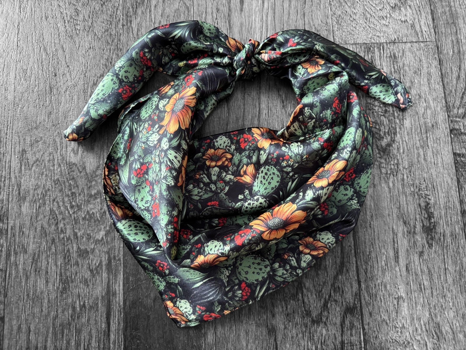 100% Silk Wild Rag Black Cactus Orange Floral by Double B Wild Rags
