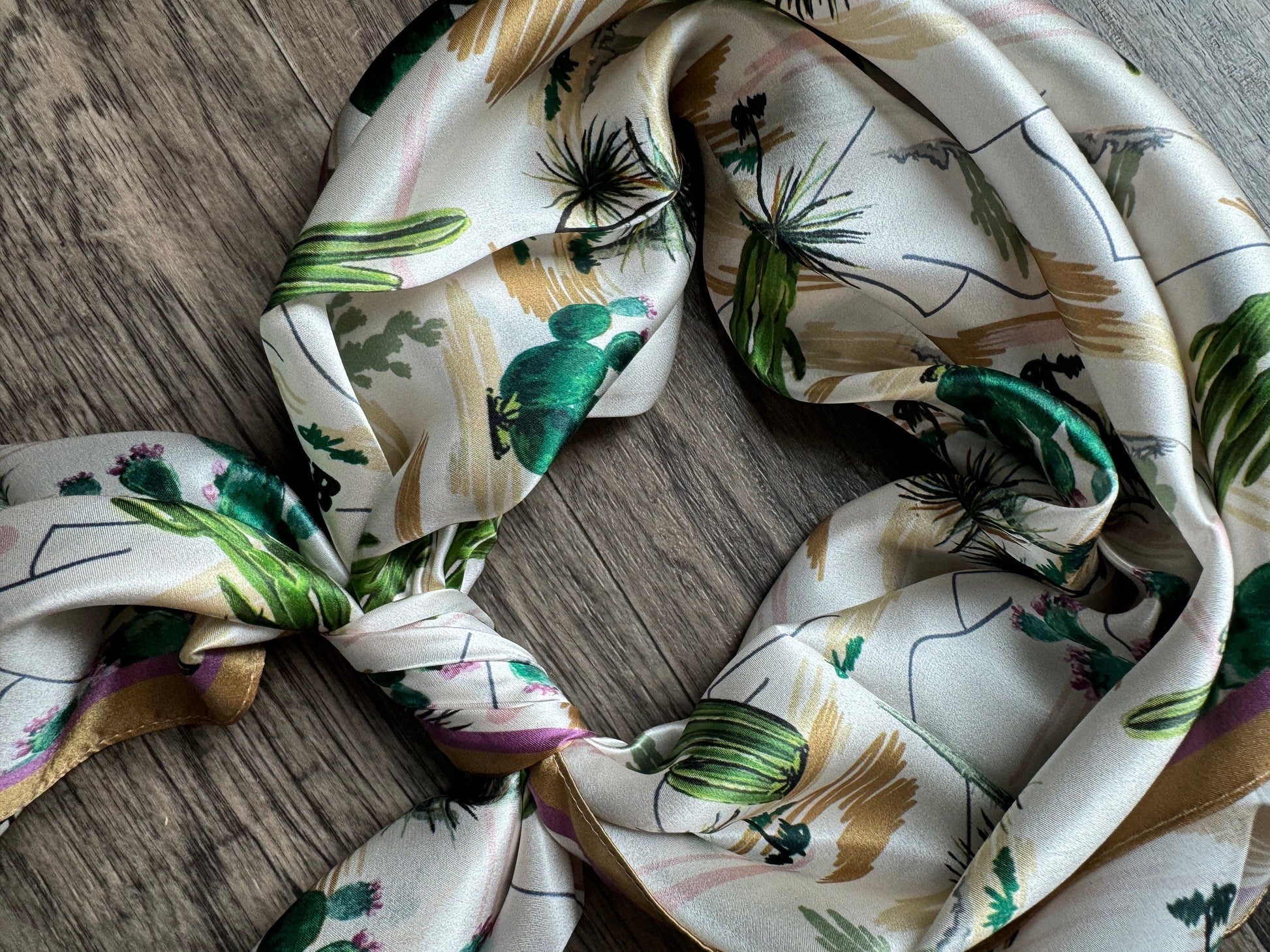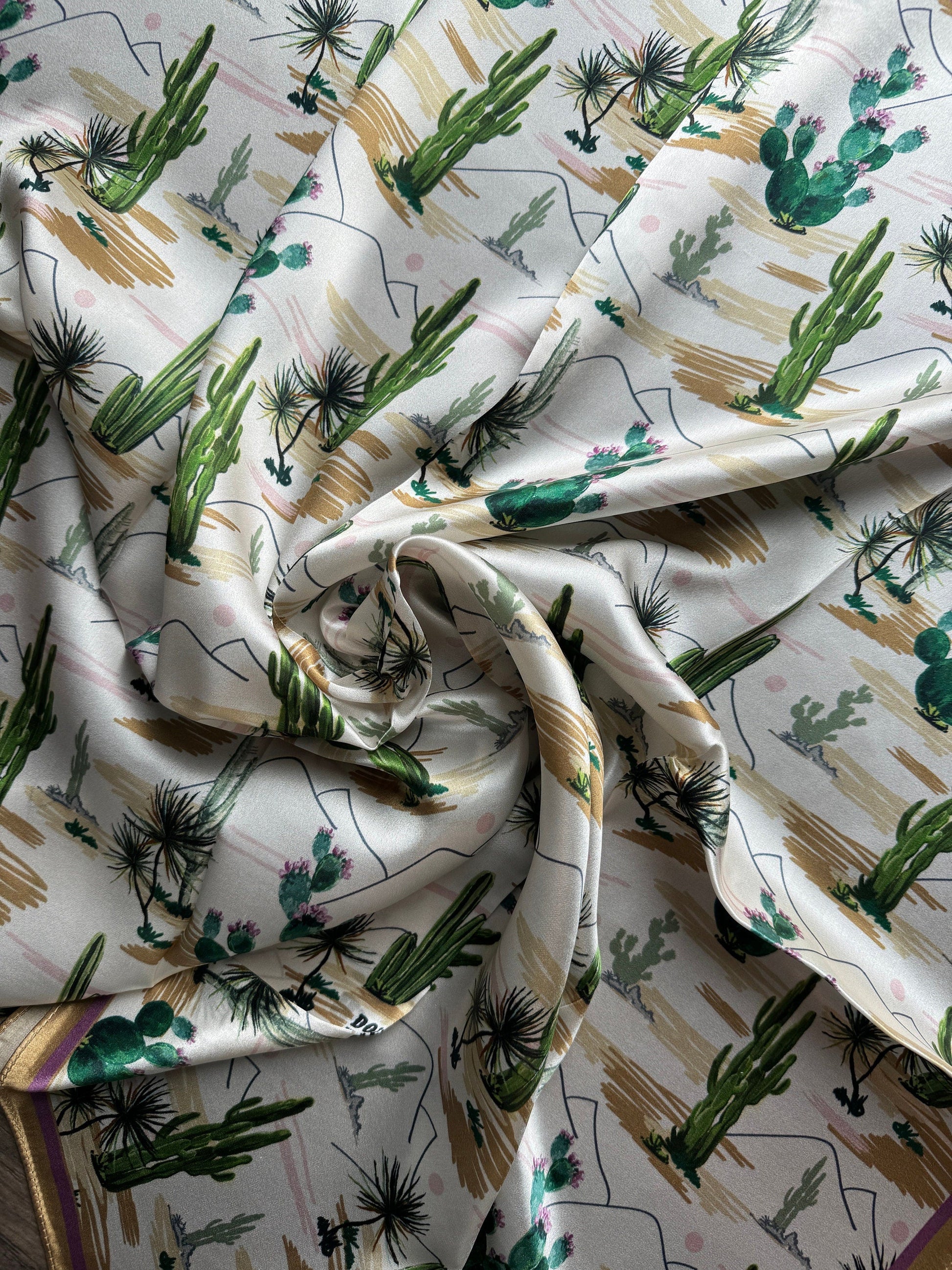 100% Silk Wild Rag Green and Gold Vintage Desert cactus by Double B Wild Rags