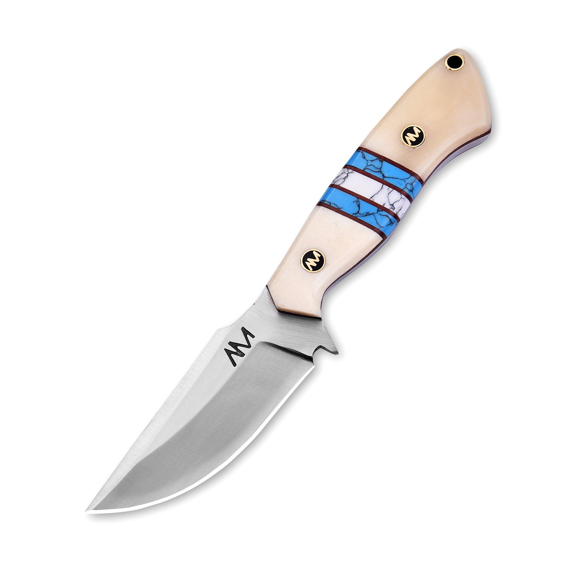 The handle is where the Arctic truly stands out. Made from natural bone, it offers a firm, traditional grip while also carrying a touch of rugged elegance. To elevate its uniqueness, the handle is beautifully accented with a turquoise stone inlay, blending artistry with function for a design that feels as timeless as it is practical.