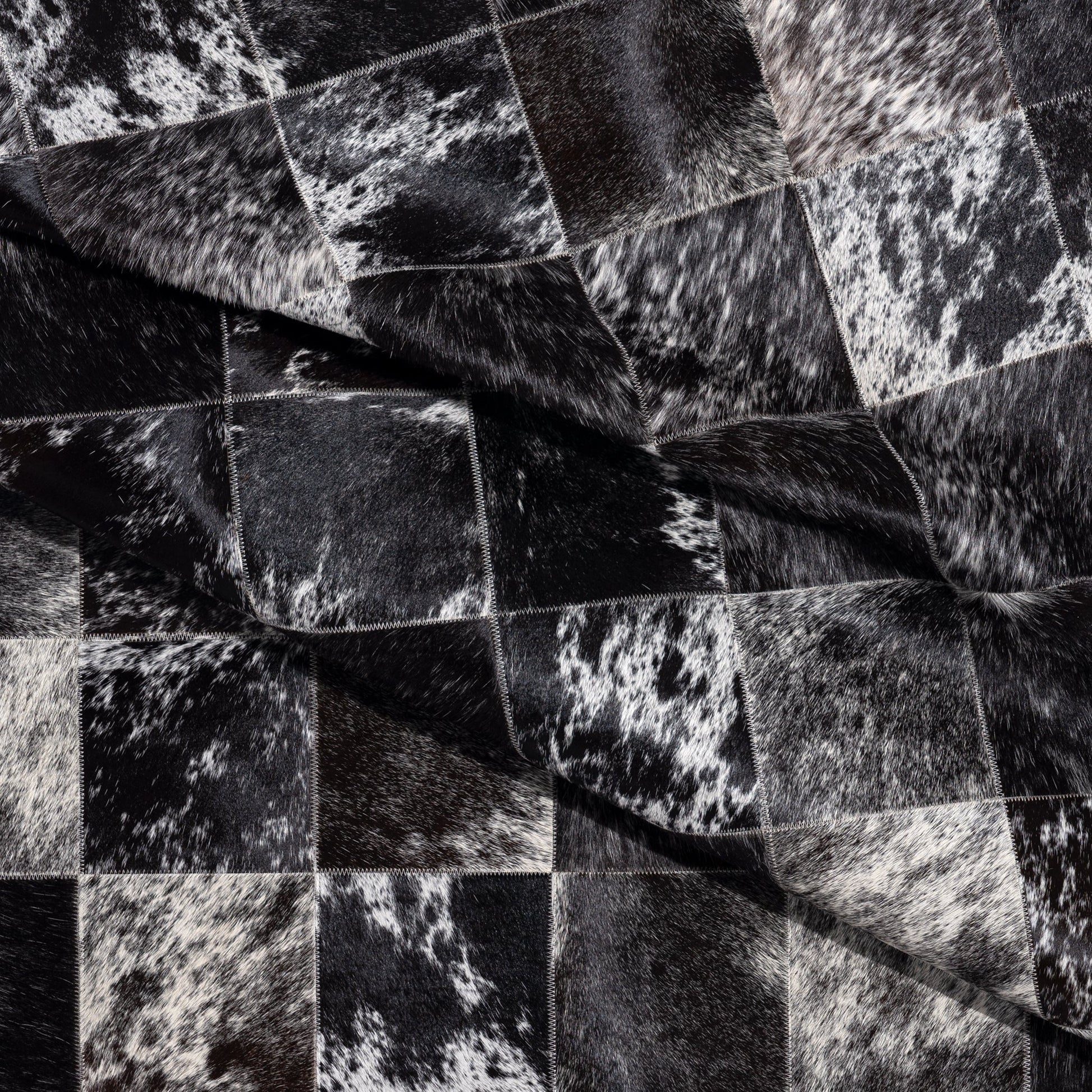 Introduce a touch of sophistication to your space with our Black Salt and Pepper Patchwork Cowhide Rug. Featuring 8 x 8 inch squares in a striking mix of black and white natural tones, each piece offers a bold yet refined aesthetic that suits any decor. Each square is meticulously selected and cut for its color to ensure it harmonizes perfectly with the surrounding squares, creating a uniform and balanced color pattern throughout the rug exclusive to eCowhides. Its salt and pepper pattern adds texture and visual interest, creating a captivating focal point for any room.