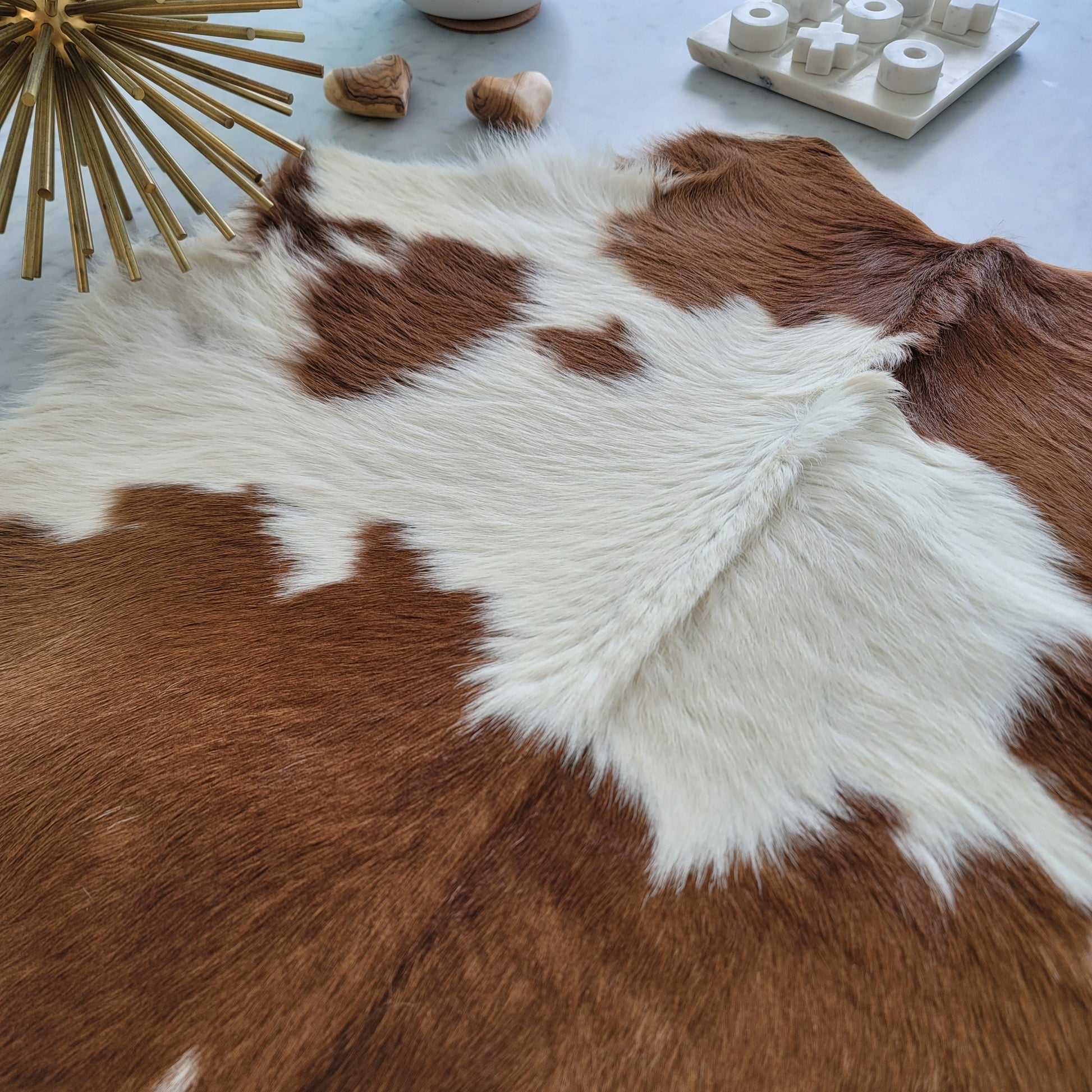 Instantly cozy up your space with our premium Brown and White Calf Hide, expertly tanned to offer unparalleled quality, softness, and sheen. Each Calf Hide is meticulously selected and trimmed by our skilled artisans in our tanneries, transforming it into the ideal accent rug.
