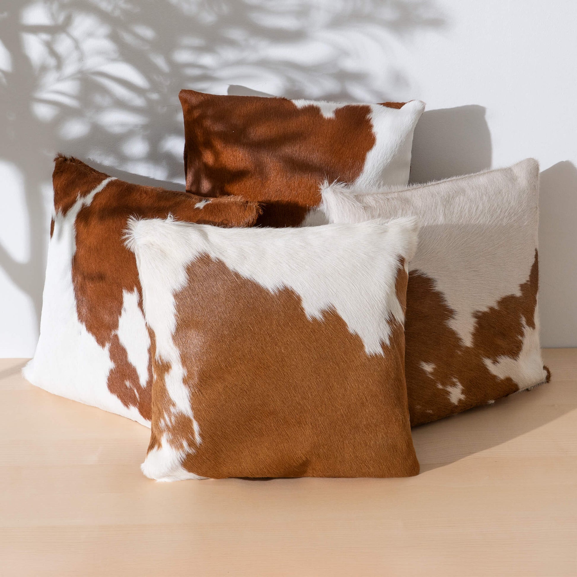 Add a Brown and White Cowhide Pillow to your collection and explore our complimentary Brown and White Cowhide Rugs in matching tones to complete your look.