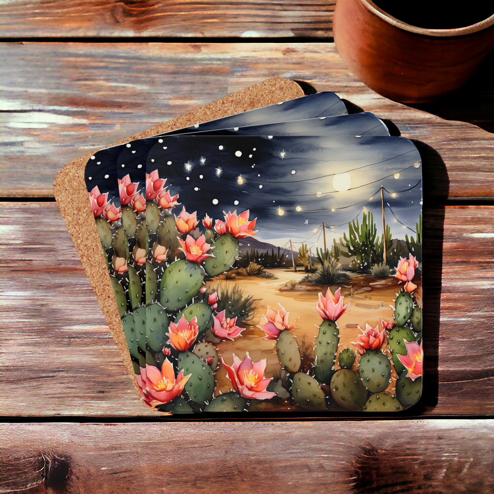 Celestial Serenity: Starlit Desert Moon Coaster Set