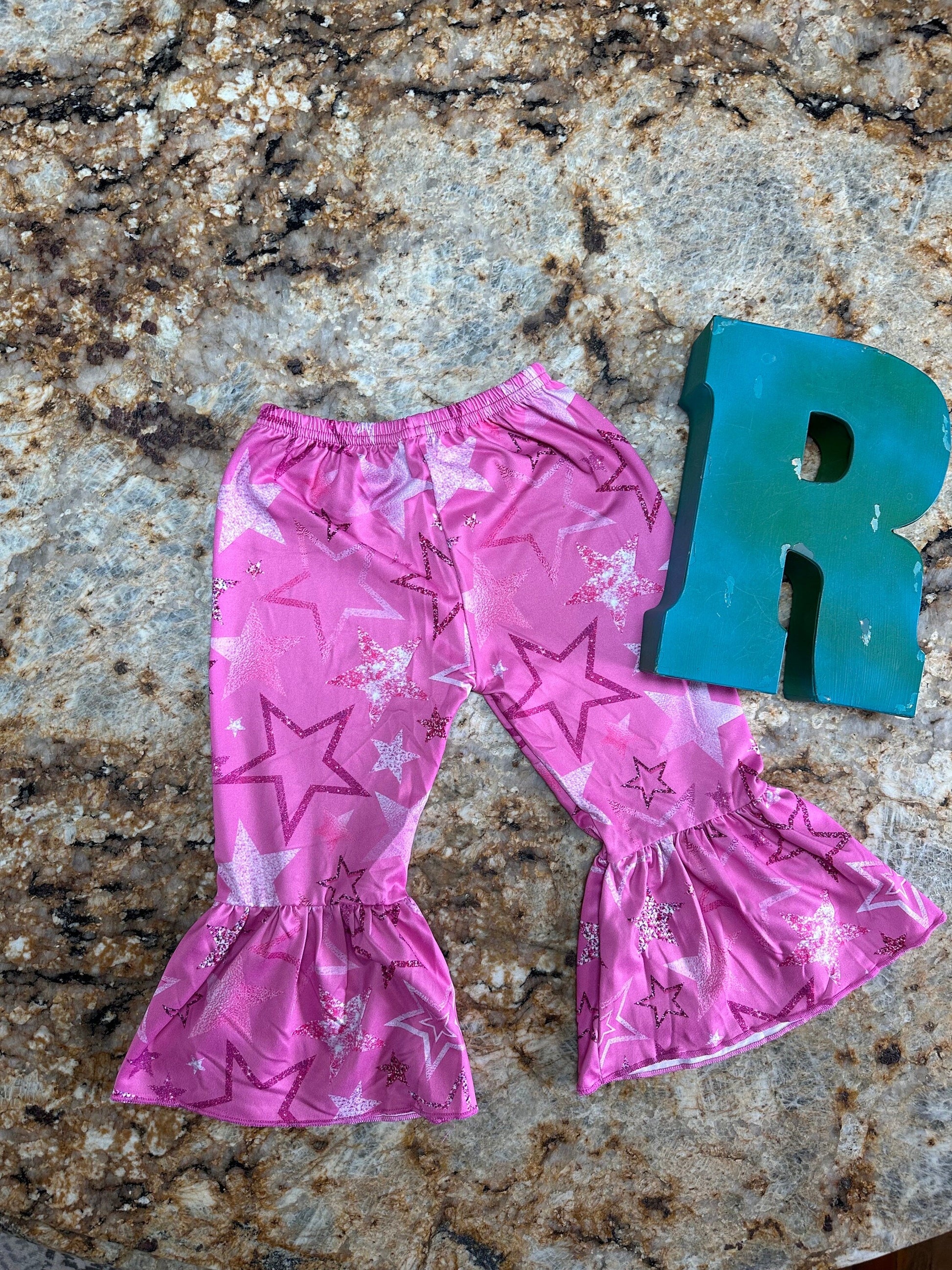 Cosmic Cowgirl Bell Bottom Outfit | Pink Stars T-Shirt & Flares | Black Fringe T-Shirt