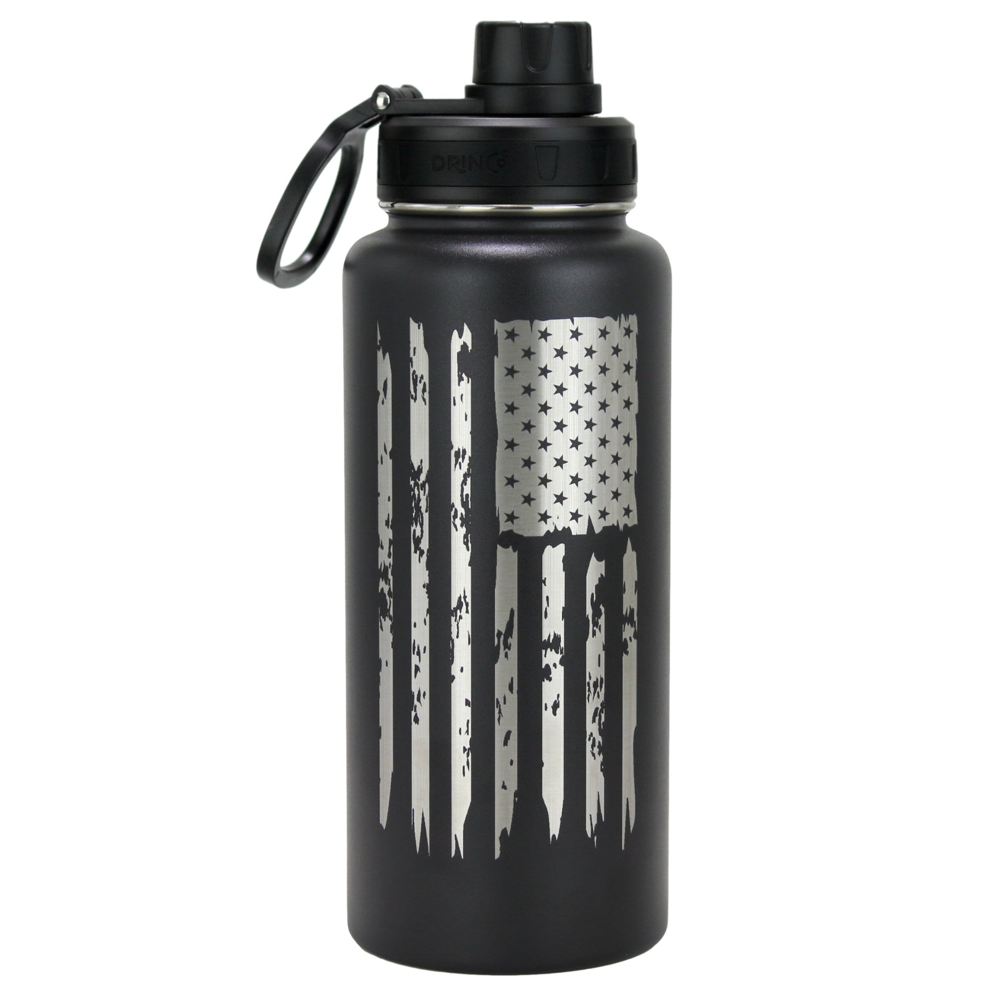 DRINCO® 32oz Stainless Steel Water Bottle - USA Flag-Black