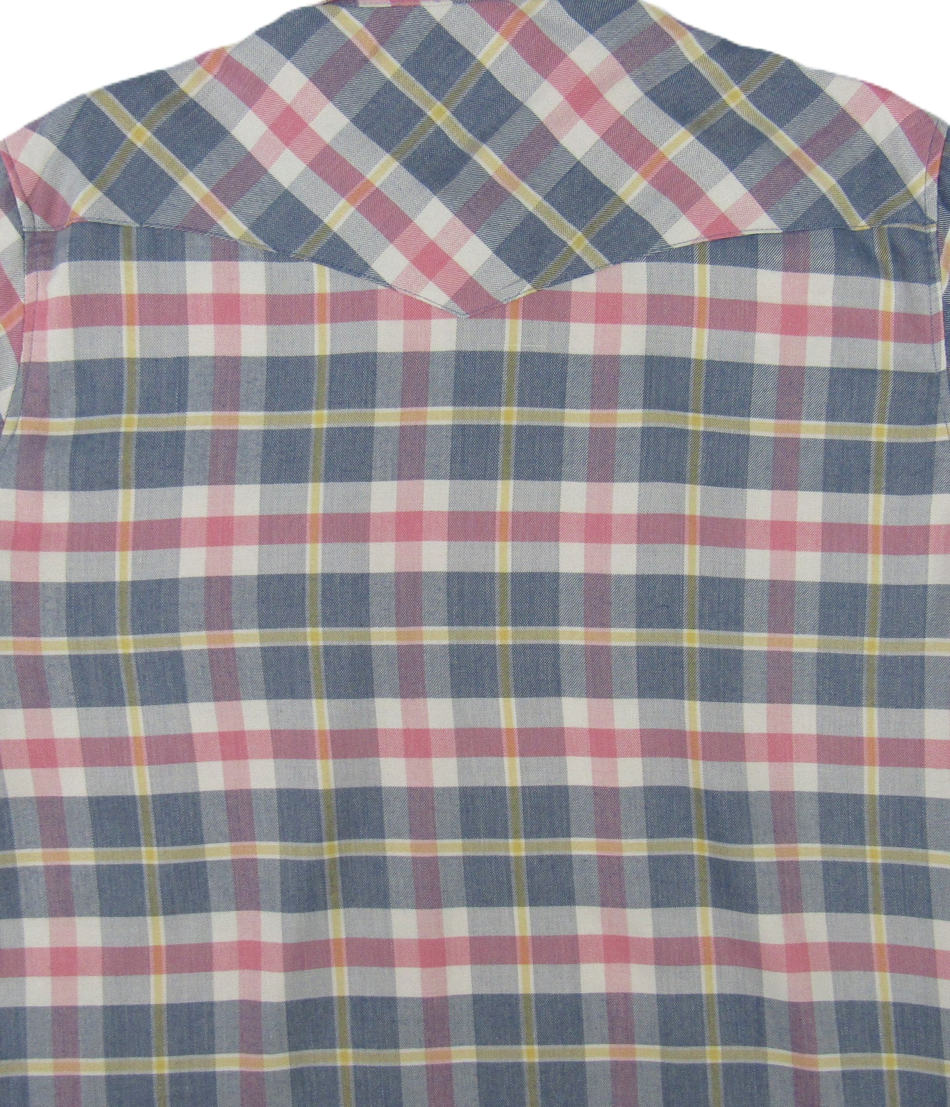 Primo plaid by Flying R Ranchwear will be the softest, most comfortable shirt in your stable and will earn its way into your rotation of favorites! Not only is this denim blue plaid soft as a cloud, the new fit is perfect for wearing tails out. We also took a little out of the body and sleeves without making it a skinny shirt. If you wear a medium in our other shirts, you can wear a medium in these and it will just look better! Made in USA, 100% Cotton. Denim Blue/salmon