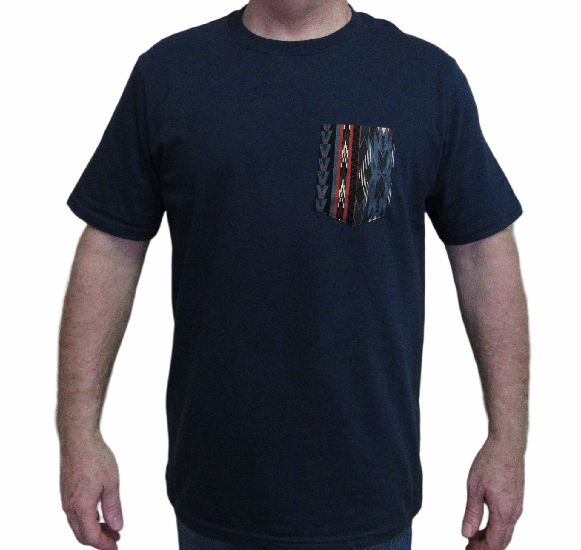 Flying R Ranchwear - Southwest Stripe Print - Navy Pocket T-shirt - Made in USA