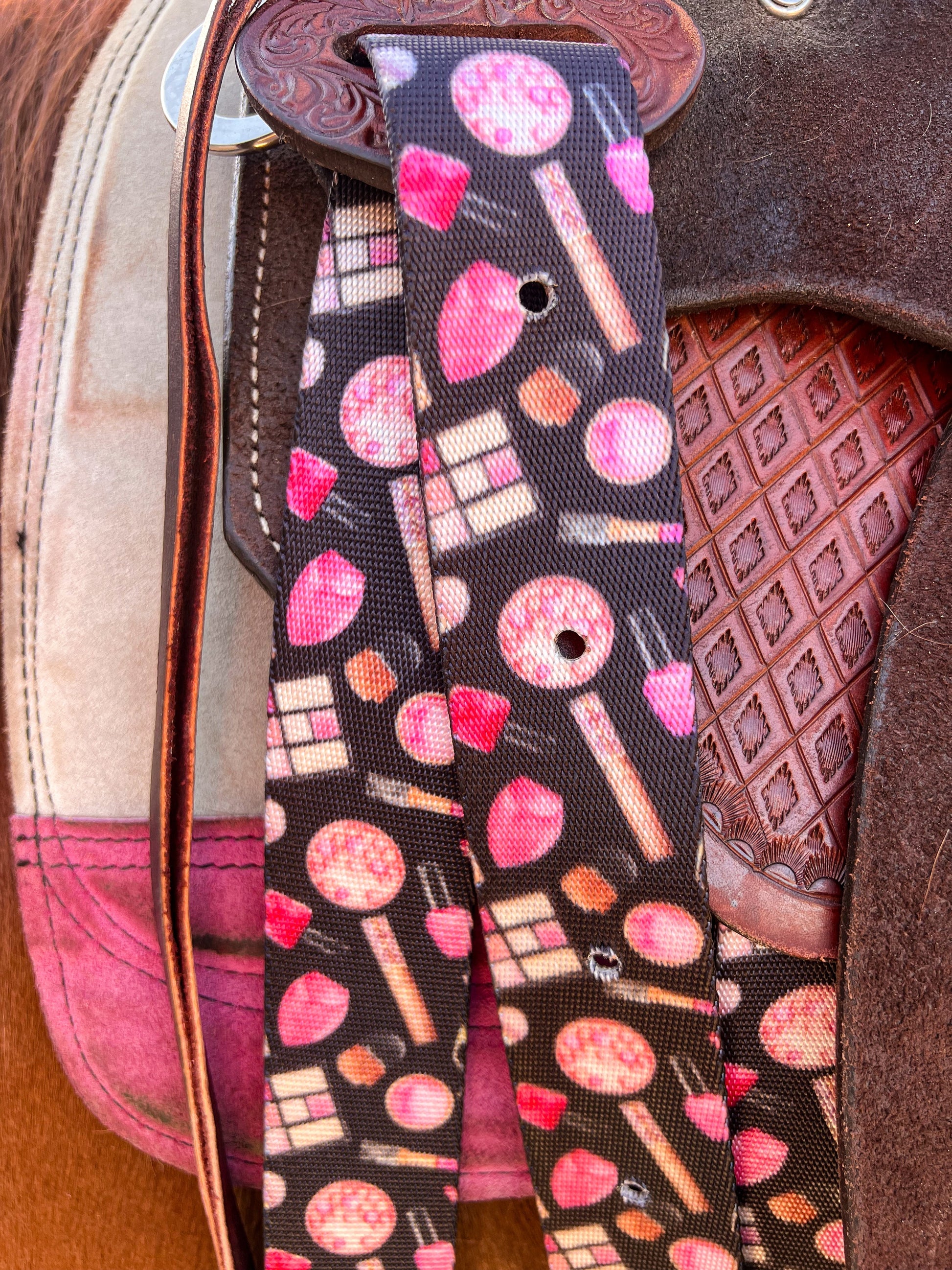 Hustle and Home printed cinch straps are 1 3/4” wide and made of industrial strength material. A latigo/off billet set includes one latigo (left side of saddle)and one two ply off billet (right side of saddle).