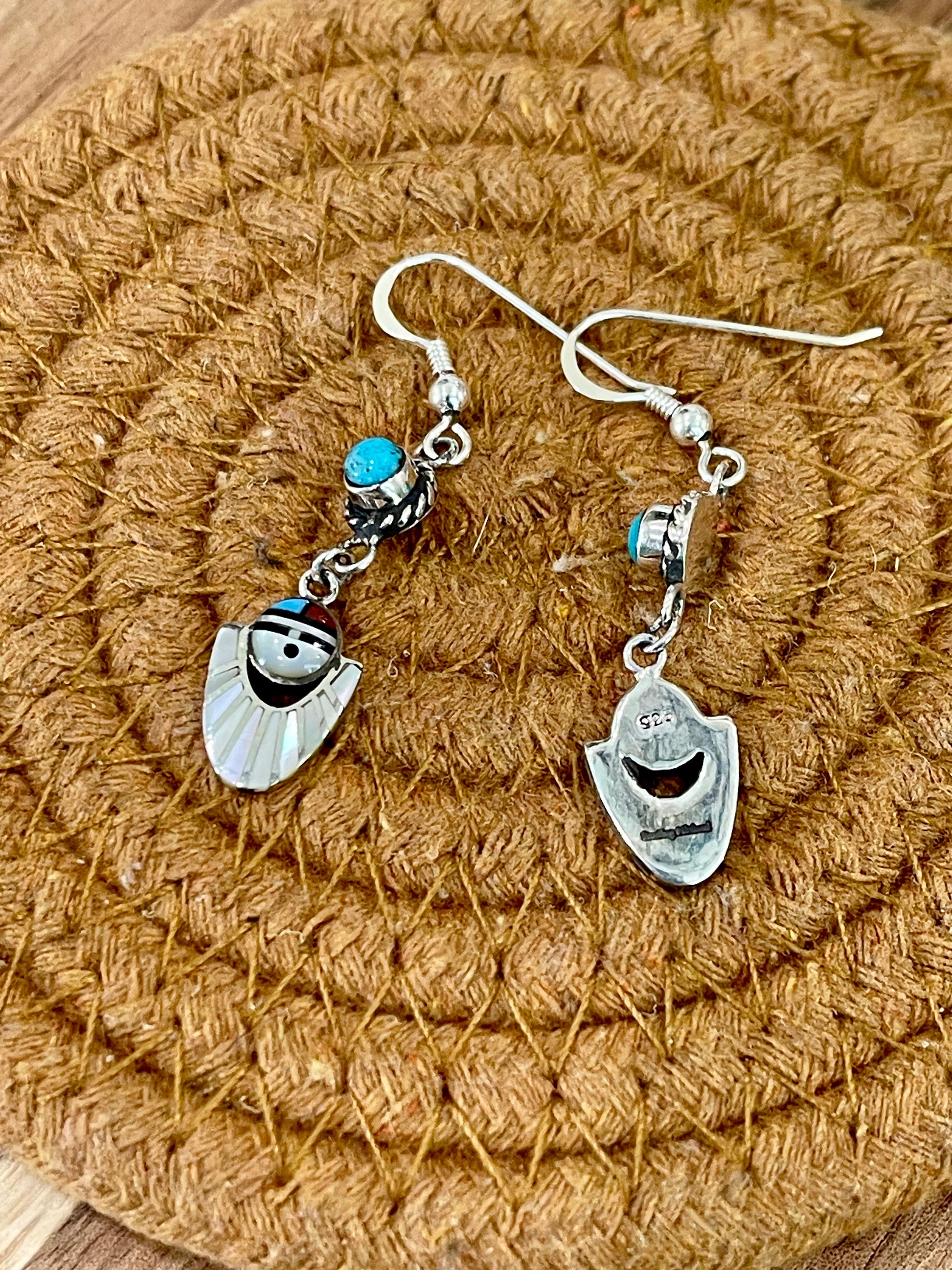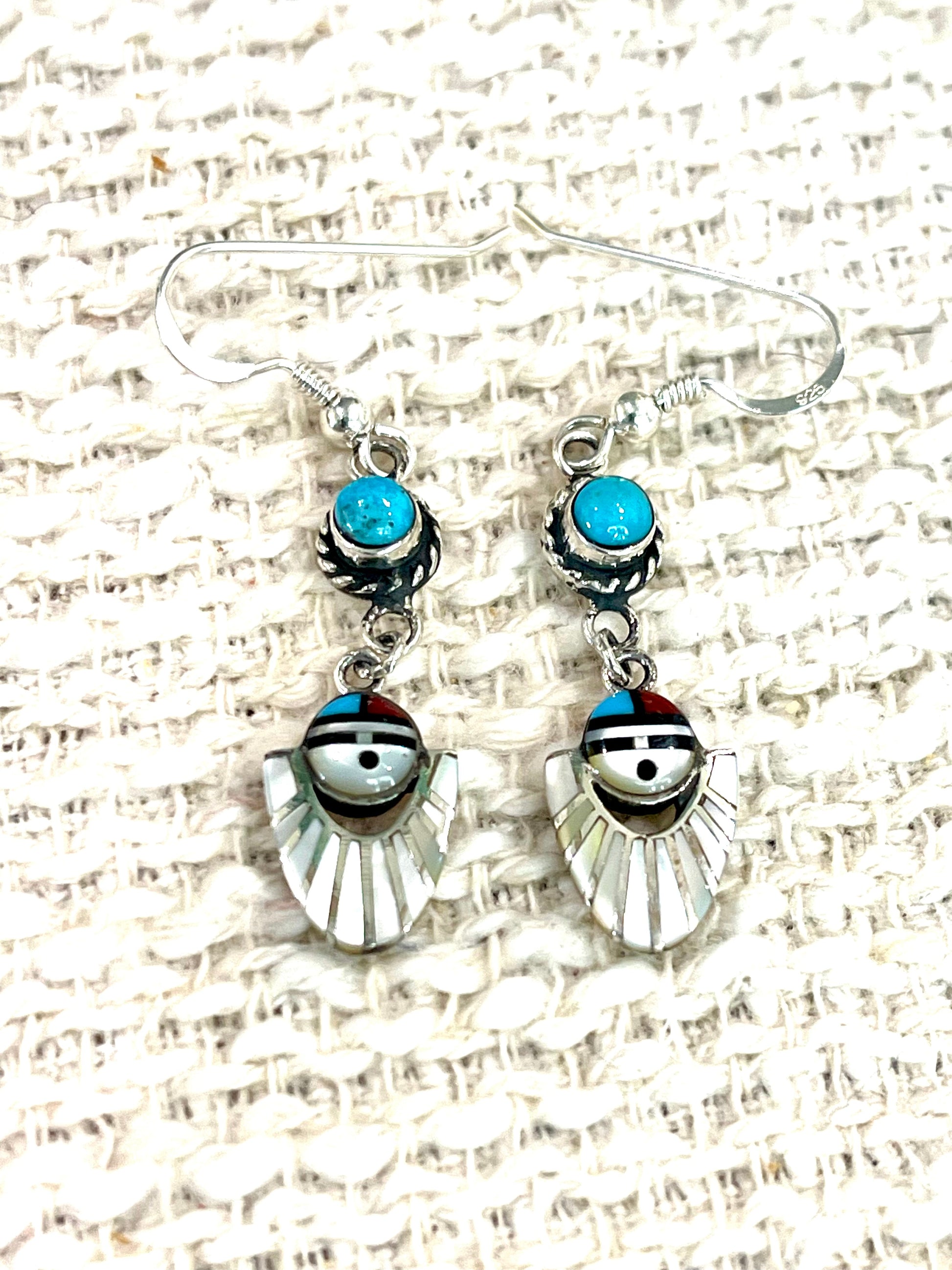 How gorgeous are these Handcrafted Sterling Silver & Multi Stone Sunface Dangle Earrings!! These are lightweight and measuring 1 3/4 inch long & just over 3/8 of an inch wide.