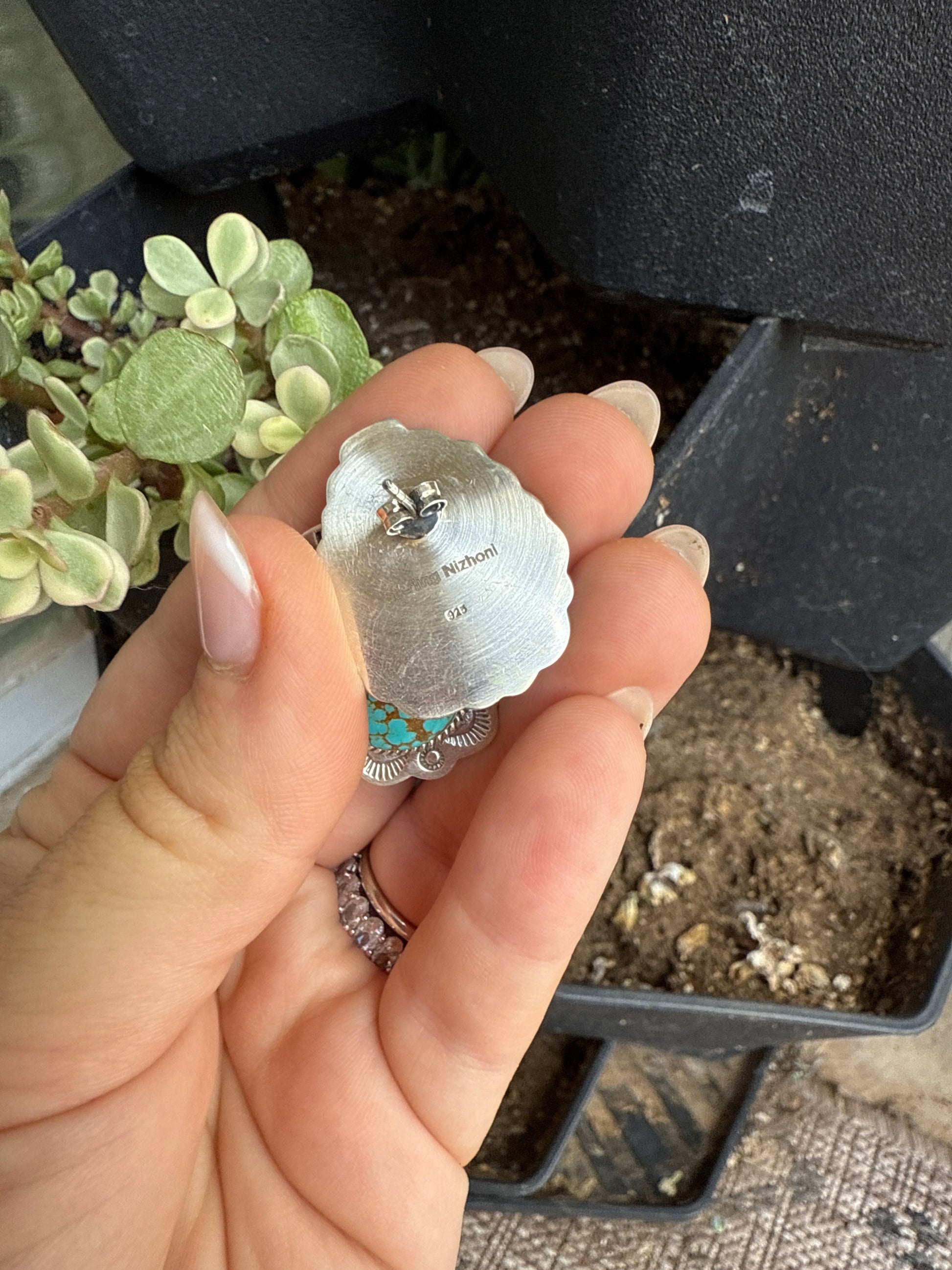 Beautiful Handcrafted Number 8 Turquoise and Sterling Silver Post Earrings.
