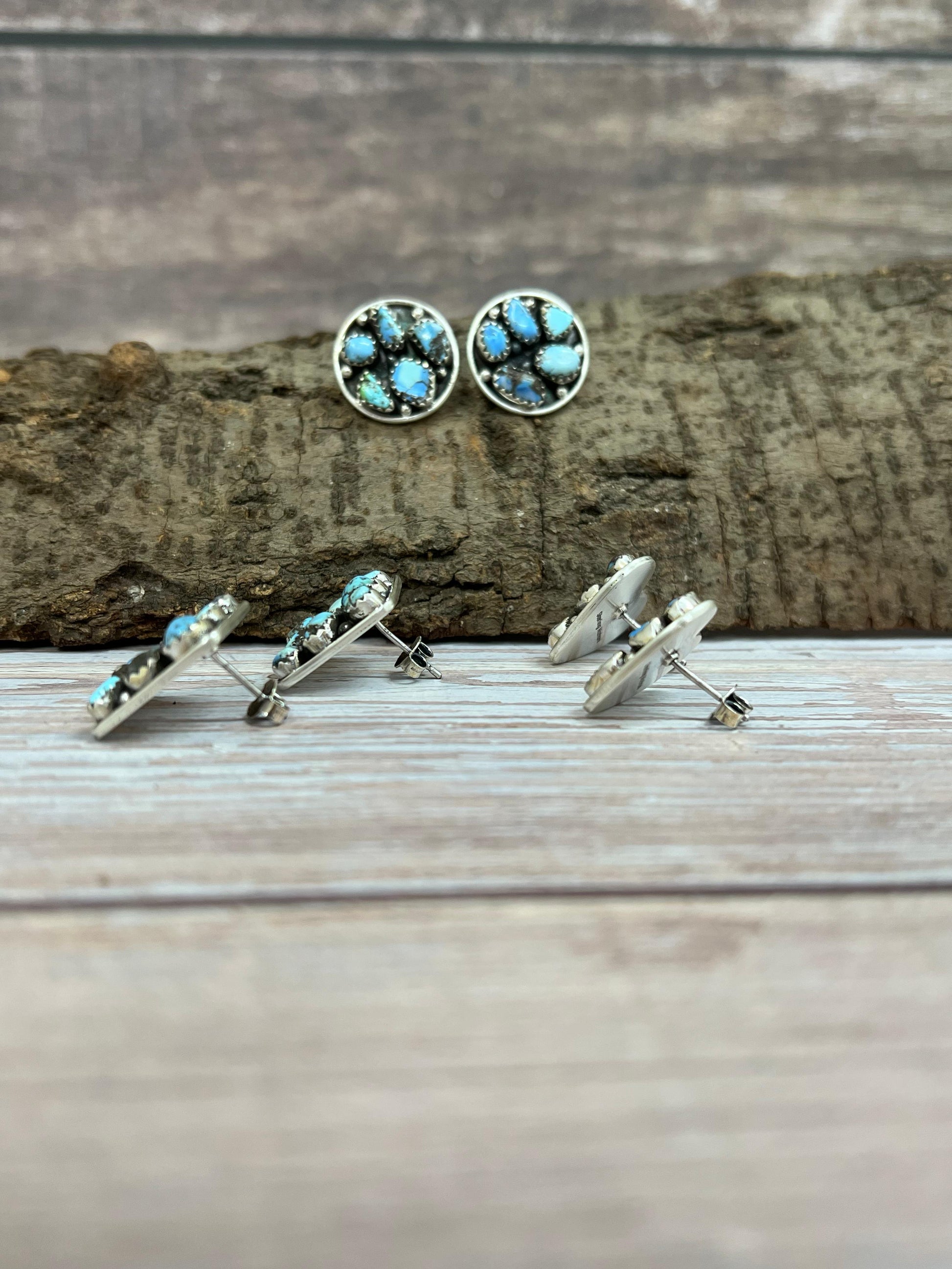 Handmade Sterling Silver Golden Hill Turquoise Post Earrings with Signed Nizhoni