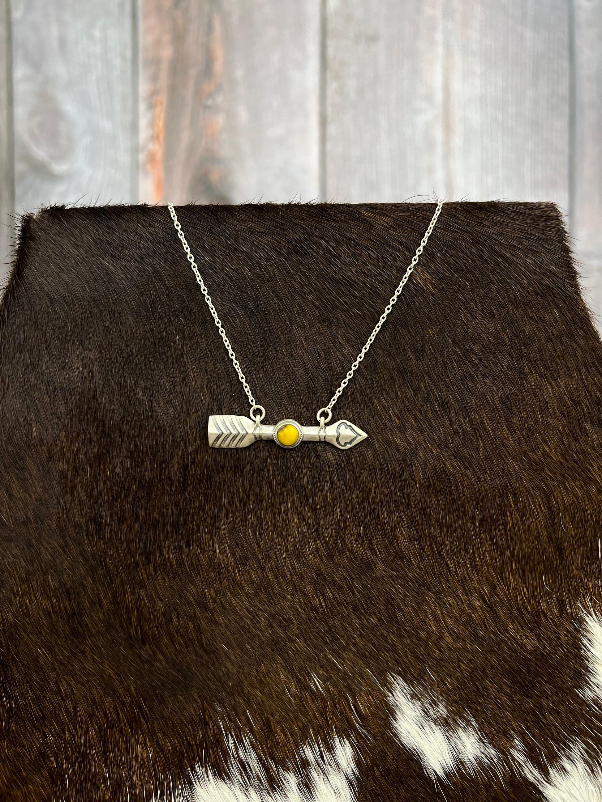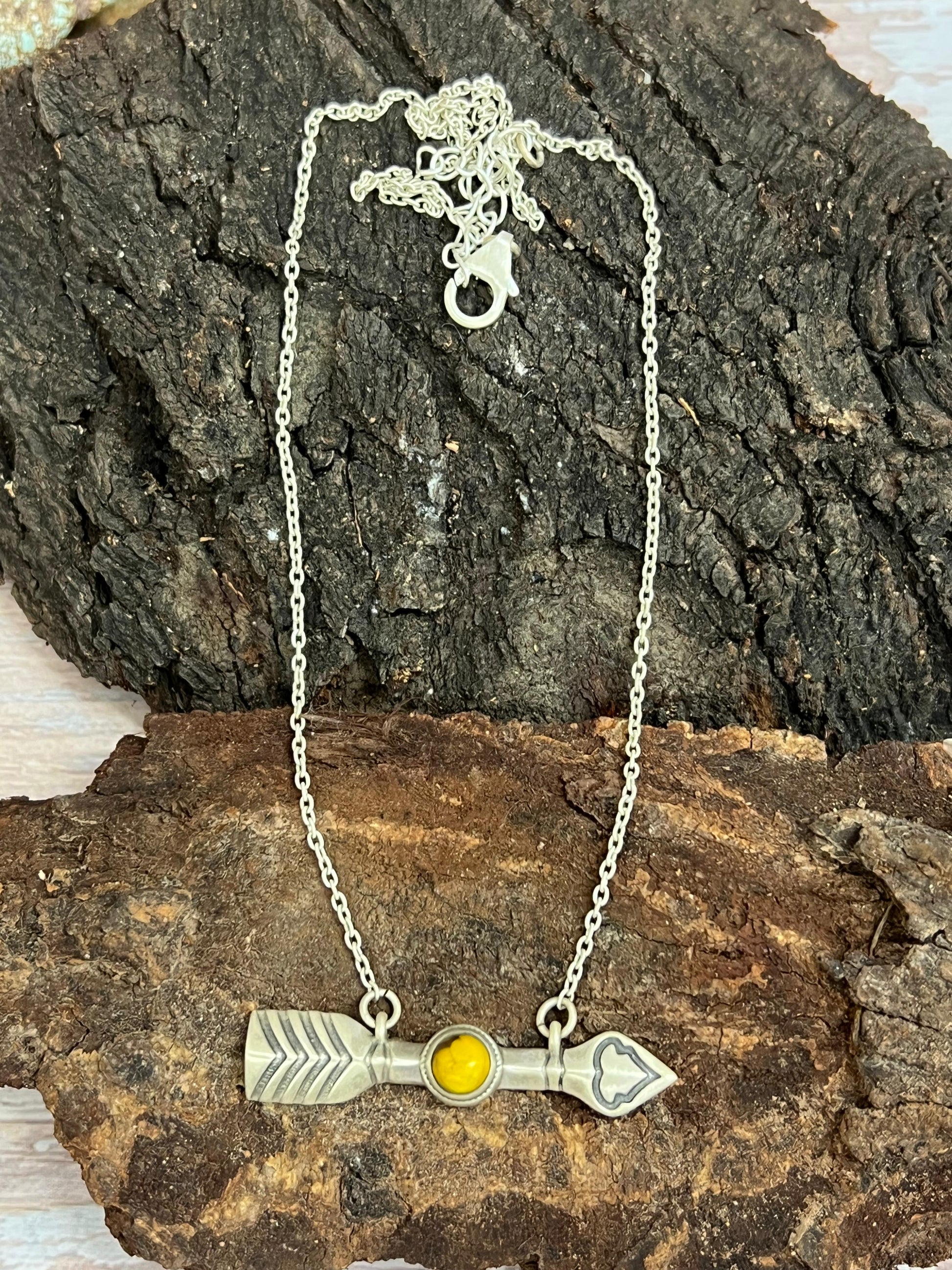 Handmade Sterling Silver Honey Dahlia Arrow Necklace with Signed Nizhoni
