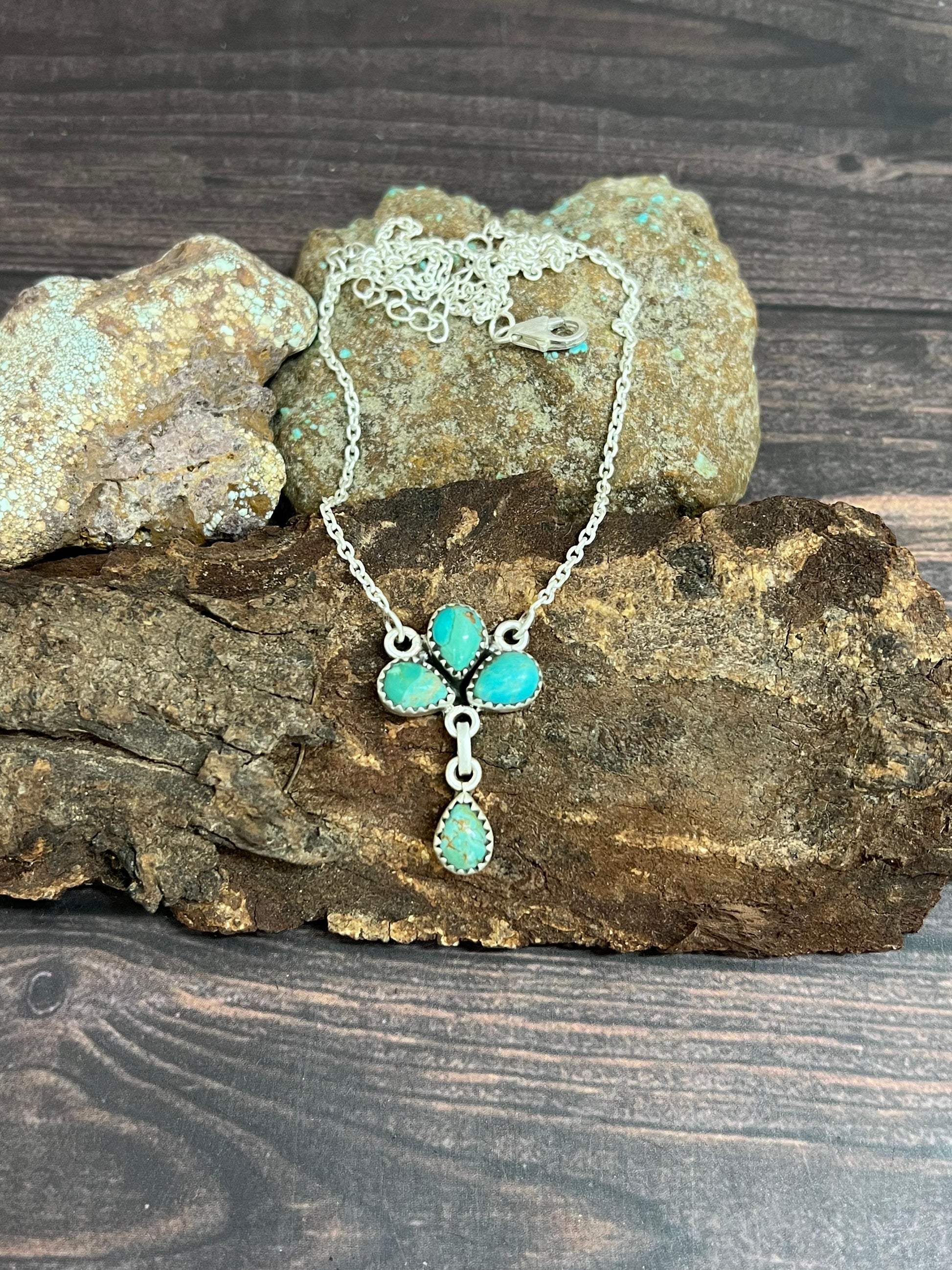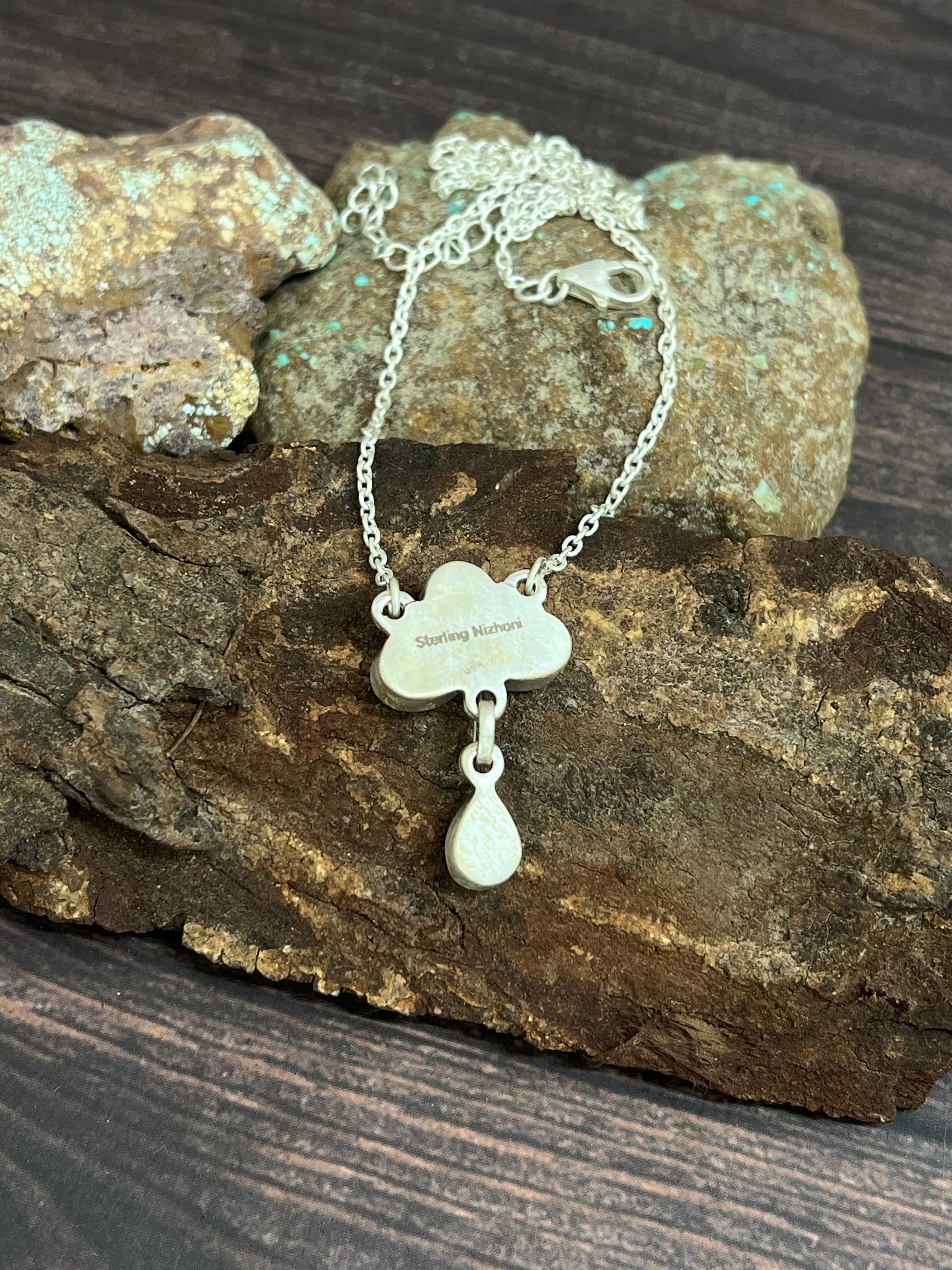 Handmade Sterling Silver Kingman Turquoise Necklace with Signed Nizhoni