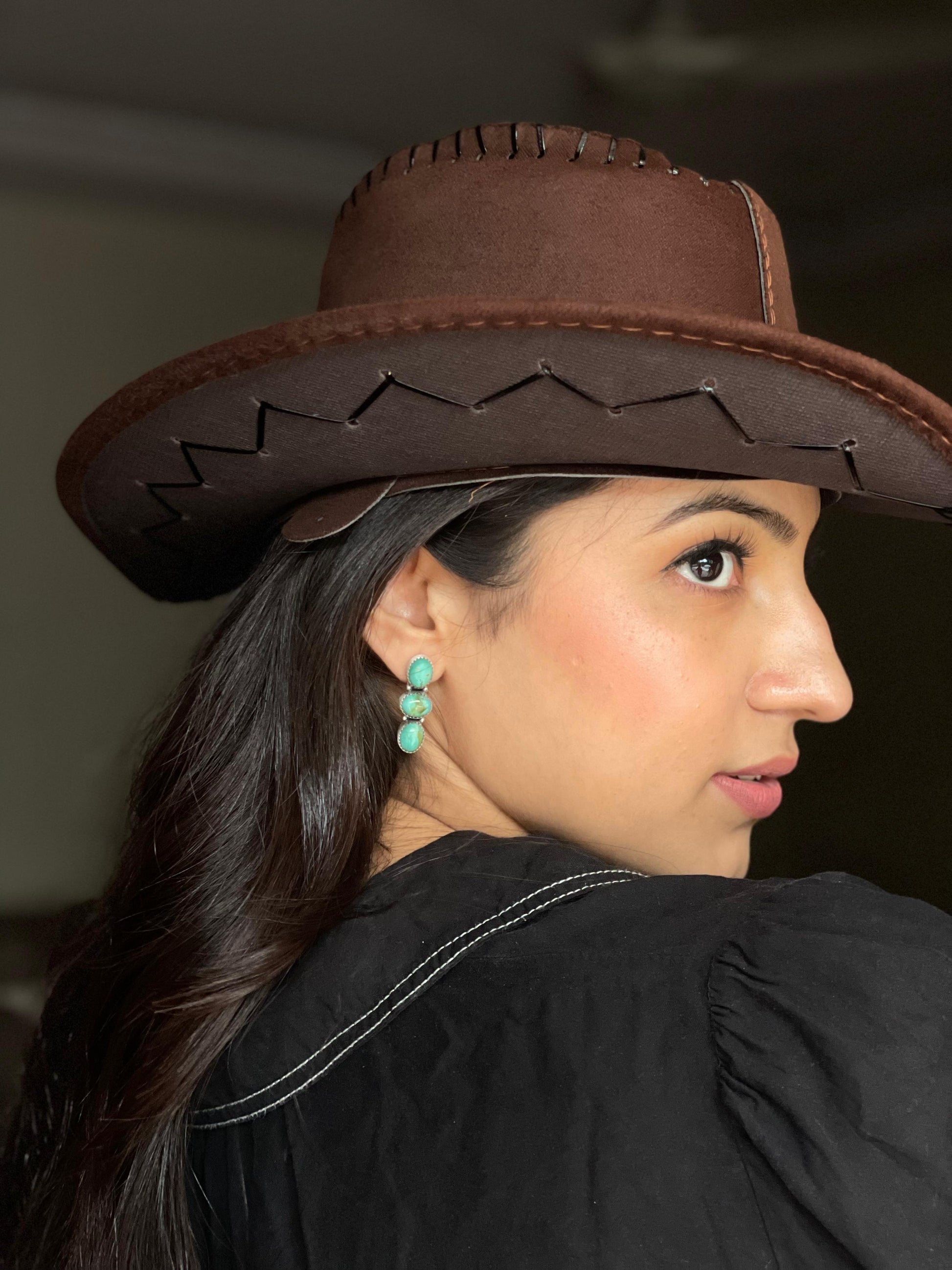Handmade Sterling Silver Kingman Turquoise Post Dangle Earrings, Signed Nizhoni