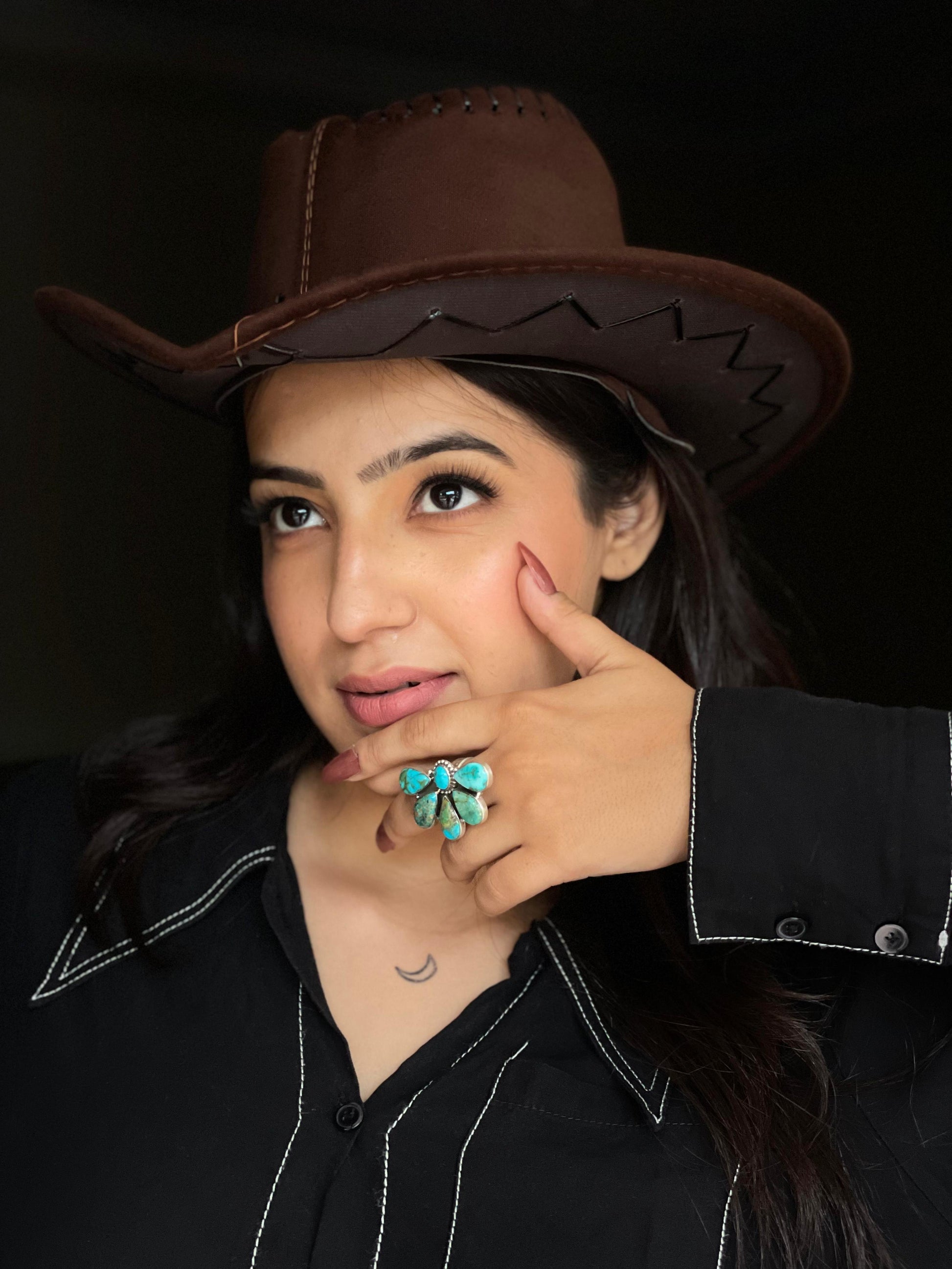 Introducing our latest masterpiece! This stunning Sterling Silver South Hill Turquoise adjustable ring is a true showstopper. With dimensions of 1 5/8" in length and 1 1/8" in width, it’s designed to make a bold statement.
