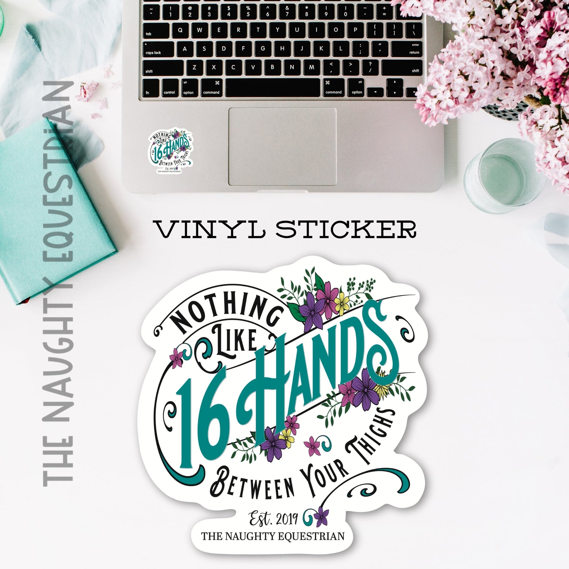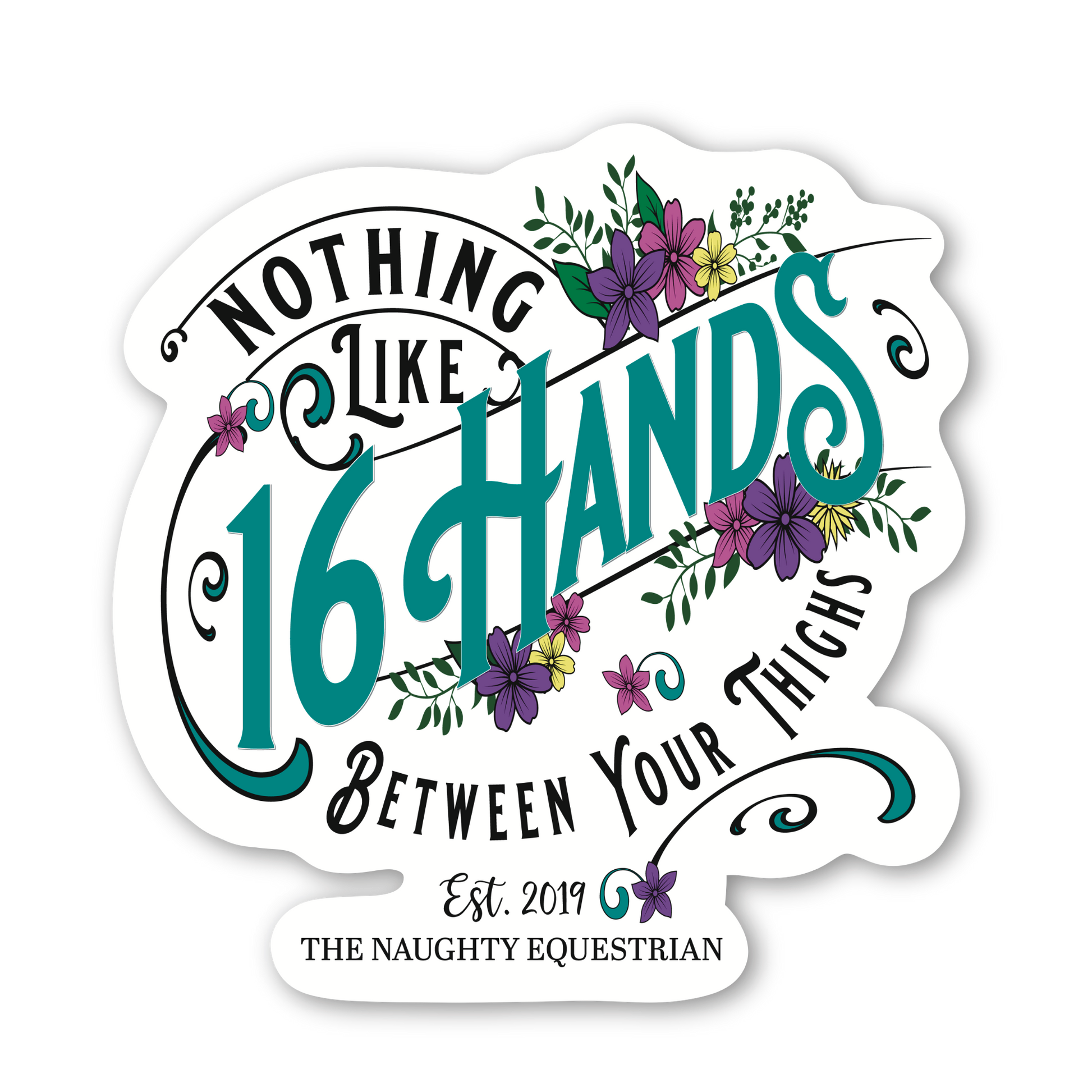 Our Happiness Is 16 Hands Sticker is so fun! Perfect for laptops, notebooks, water bottles and more. Our stickers are protected with a UV and water-resistant laminate.