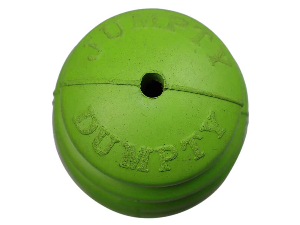 Designed to relieve your dog’s natural instinct for chewing, the Jumpty Dumpty will clean your dog’s teeth while they chew! The grooves help to keep your dog’s jaw strong and the natural organic rubber is extremely durable. The Jumpty Dumpty has a small hole at the bottom where you can add kibble or treats for long-lasting chewing fun.