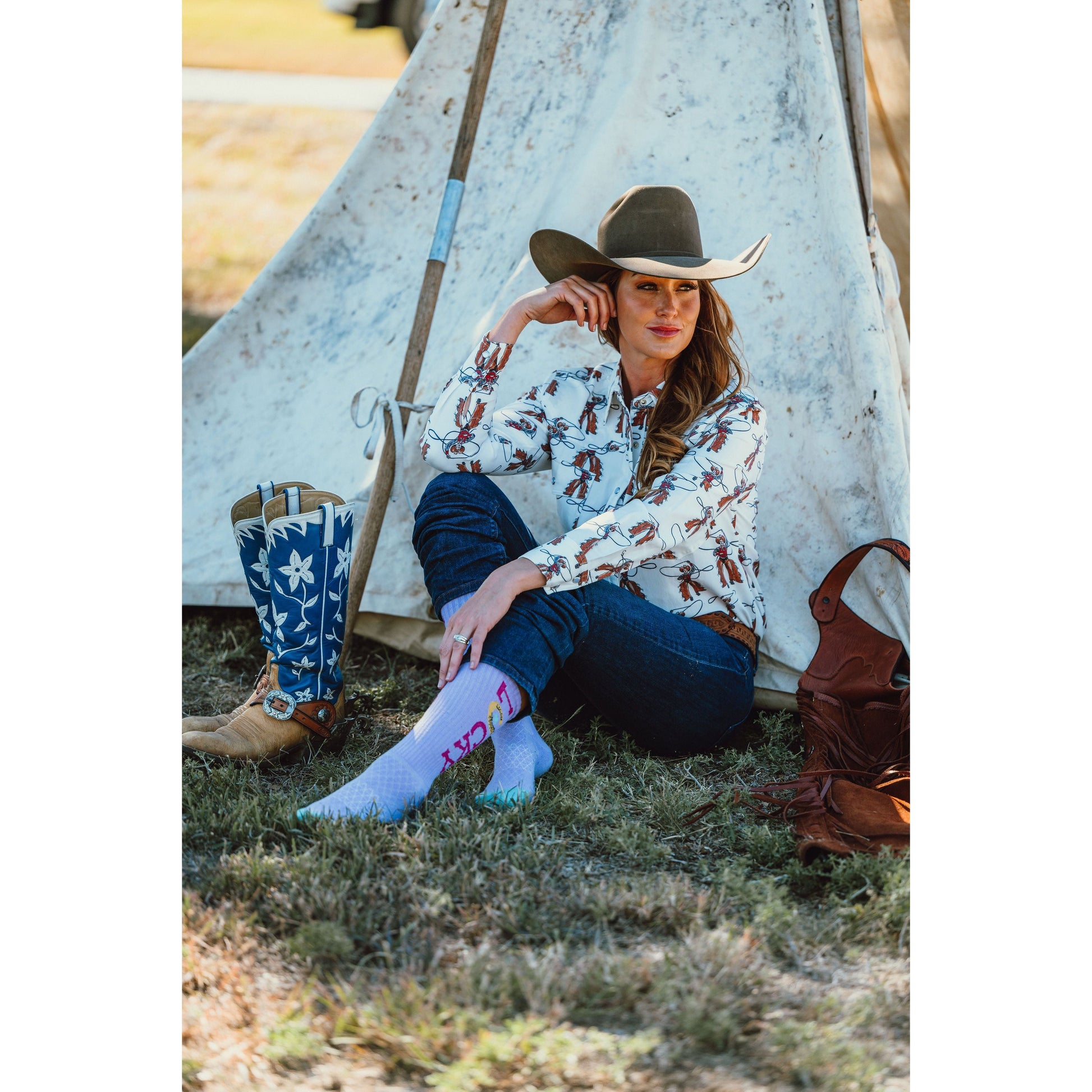 Designed by head cowgirl Lorinda Van Newkirk, it’s no surprise these riding essentials come pack with style and well-thought-out design. They are tall enough and stay up to protect your calves and never cut the circulation off. Lucky Chuck Performance Socks softens with every wash, but without wearing out ~ meaning even more chances to wear your lucky socks every day. Everyone deserves to wear a pair of LUCKY Chuck SOCKS!!