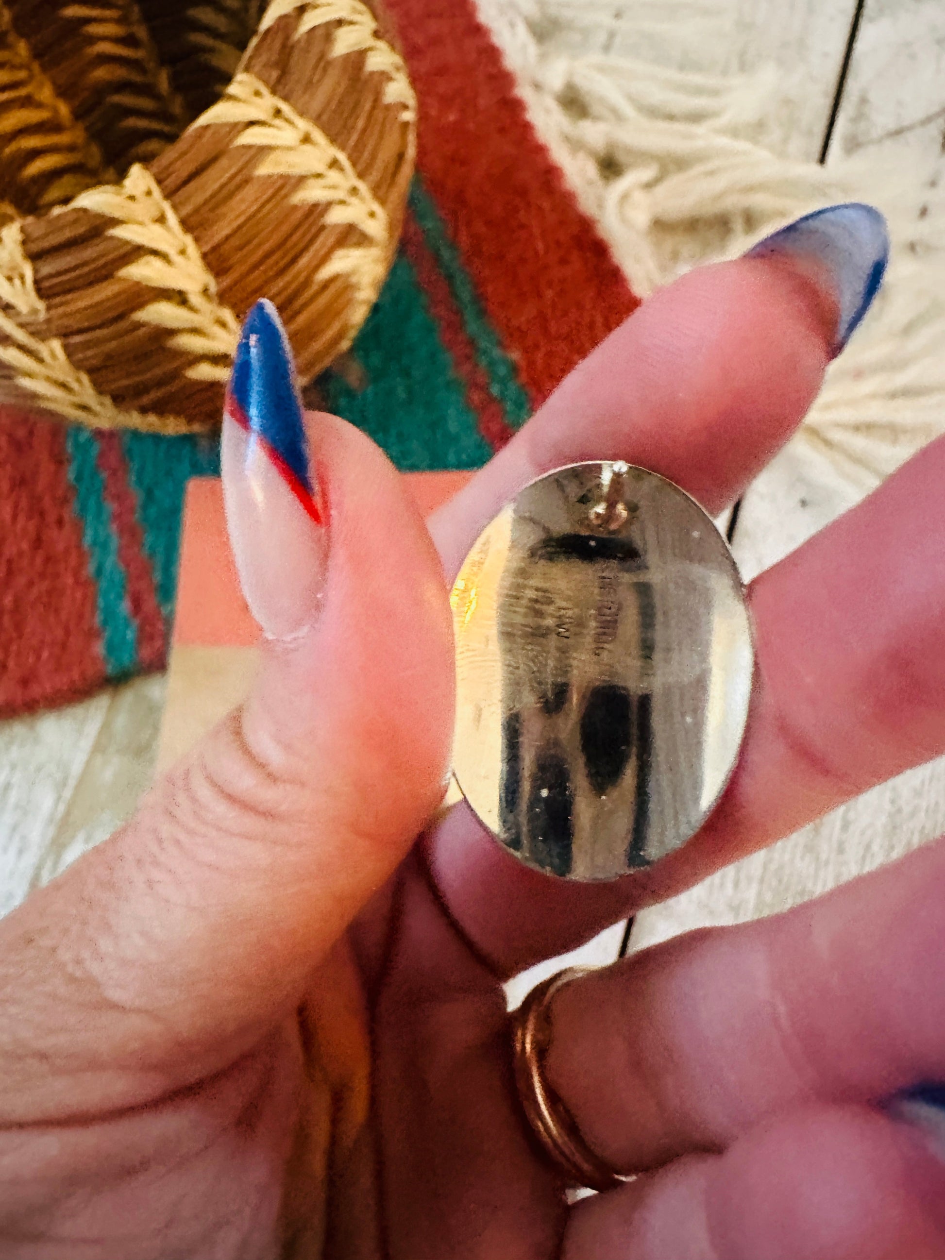 Lovely handcrafted Malachite & Sterling Silver post earrings. The beauties measure 1 1/4 inches long and 7/8 of an inch wide. Stamped Sterling.