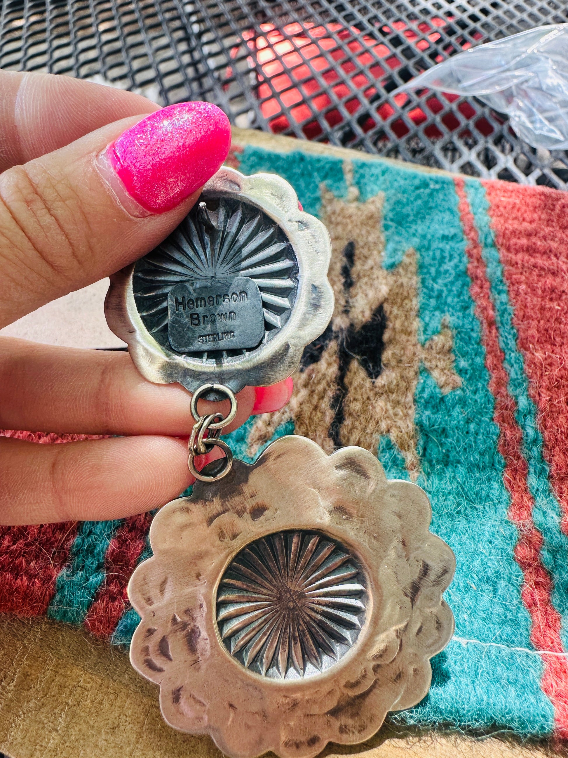 Hand Stamped Sterling Silver Concho Dangle Earrings. Such a gorgeous pair for any collection! These beauties measure 3 3/4 inches long and 2 inches wide. Stamped Sterling and signed by the artist Hemerson Brown.