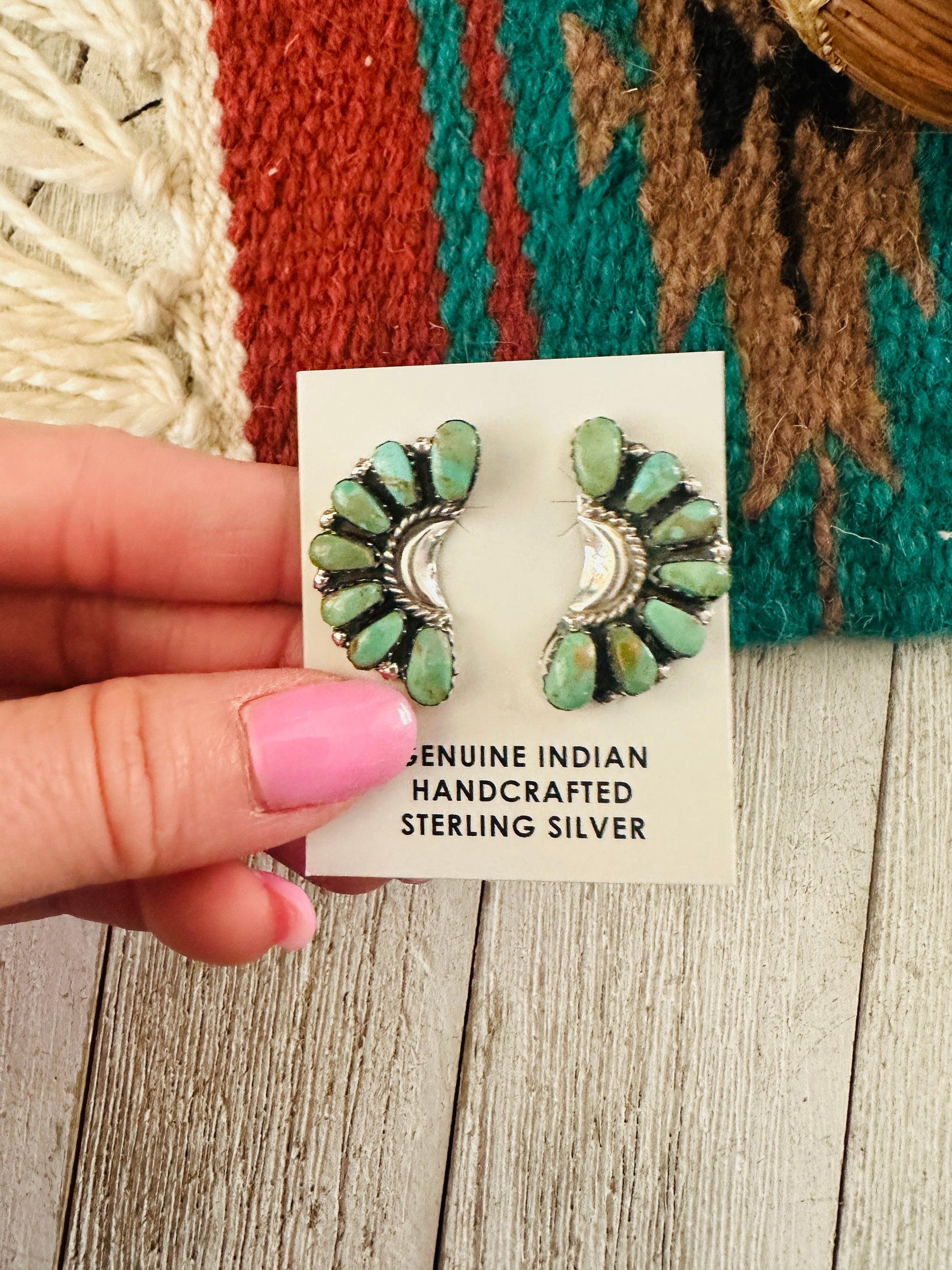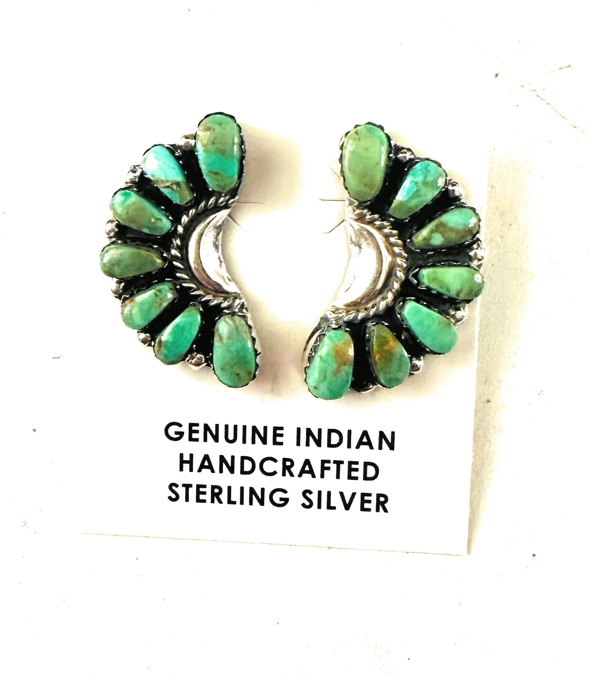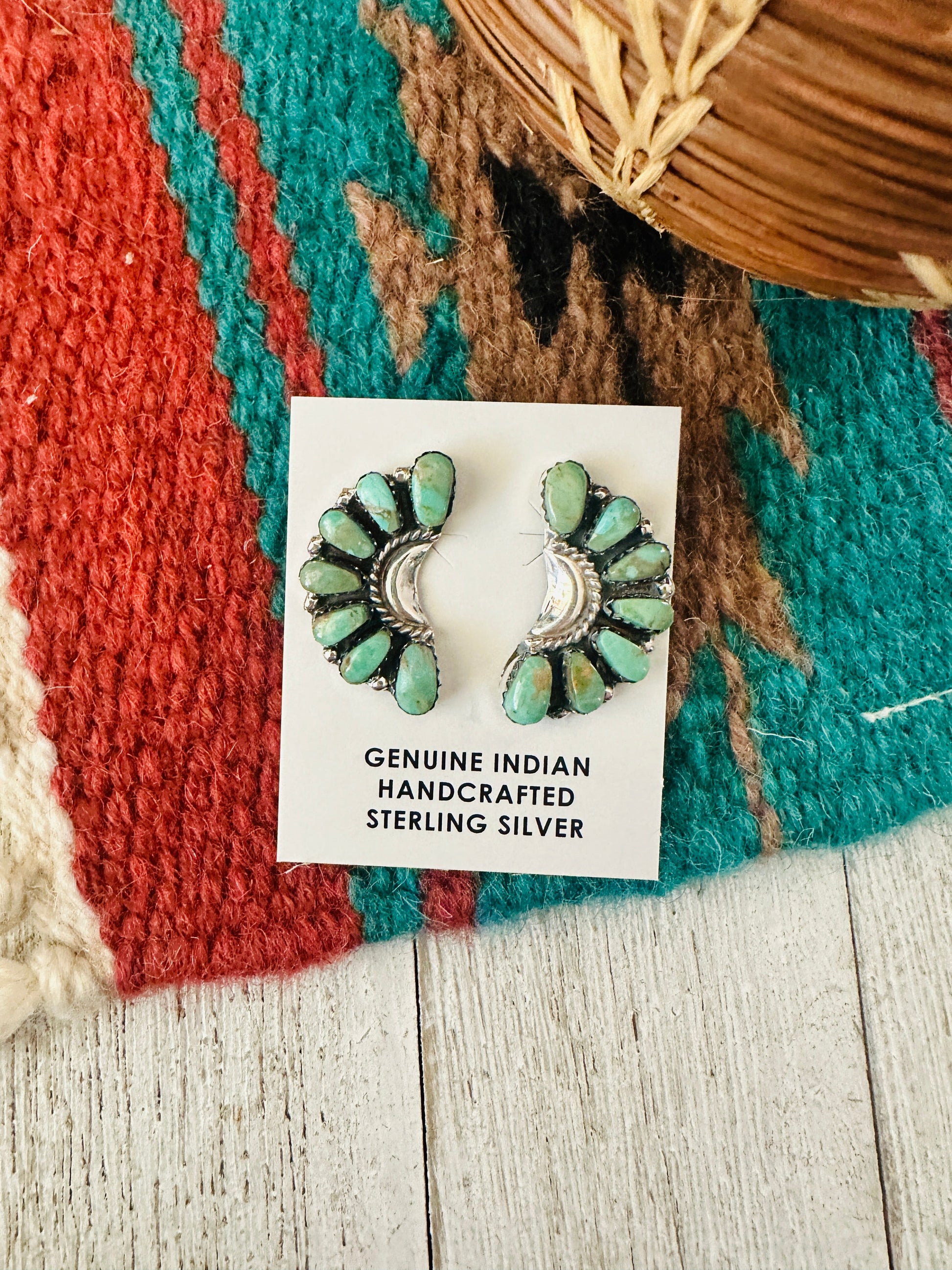 Handcrafted Turquoise & Sterling Silver Crescent Cluster Earrings