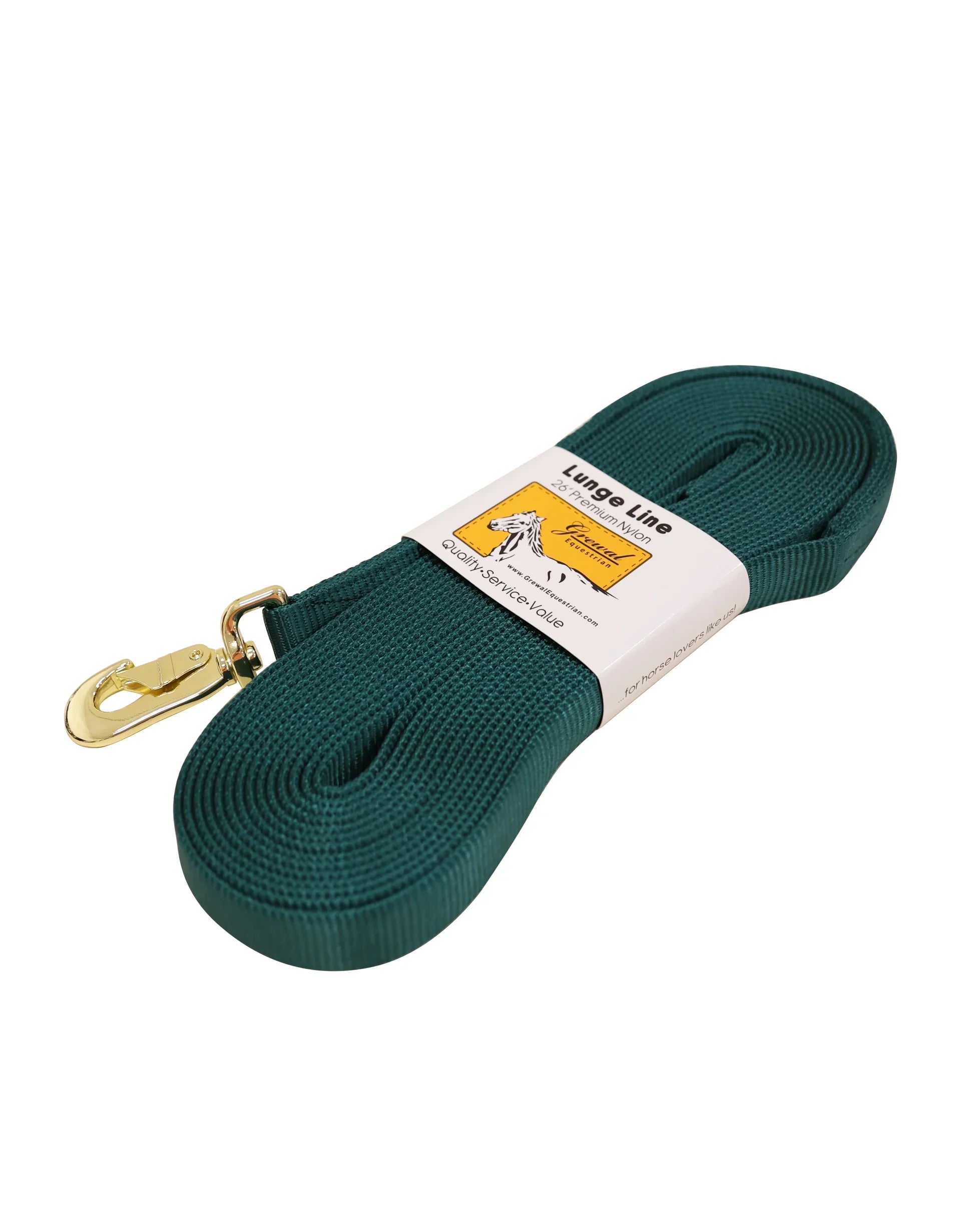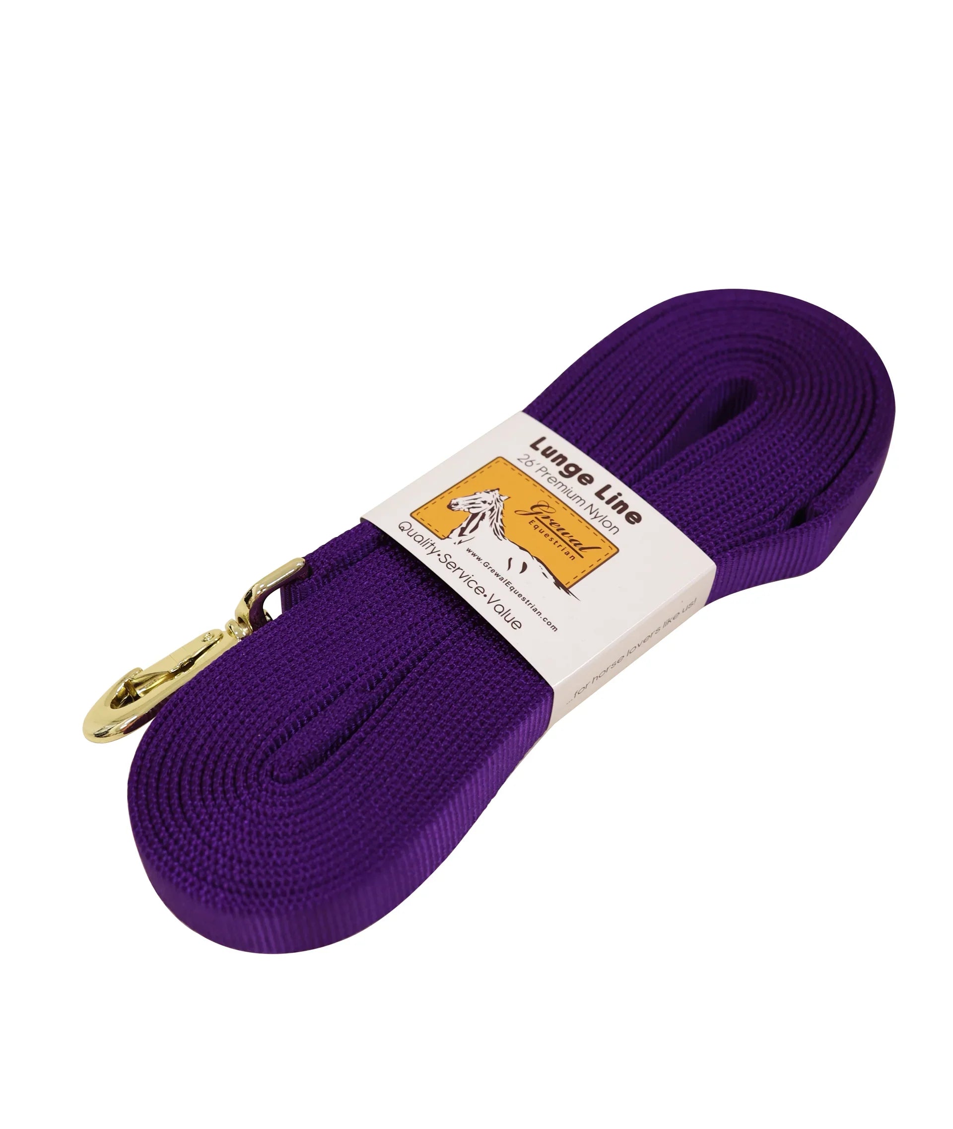 Our nylon lunge lines are made with 1" durable nylon webbing that provides a comfortable grip. Measuring 26' in length, lunge lines are essential for exercising your horse between rides and working with young horses that are not yet trained to saddle and bridle.