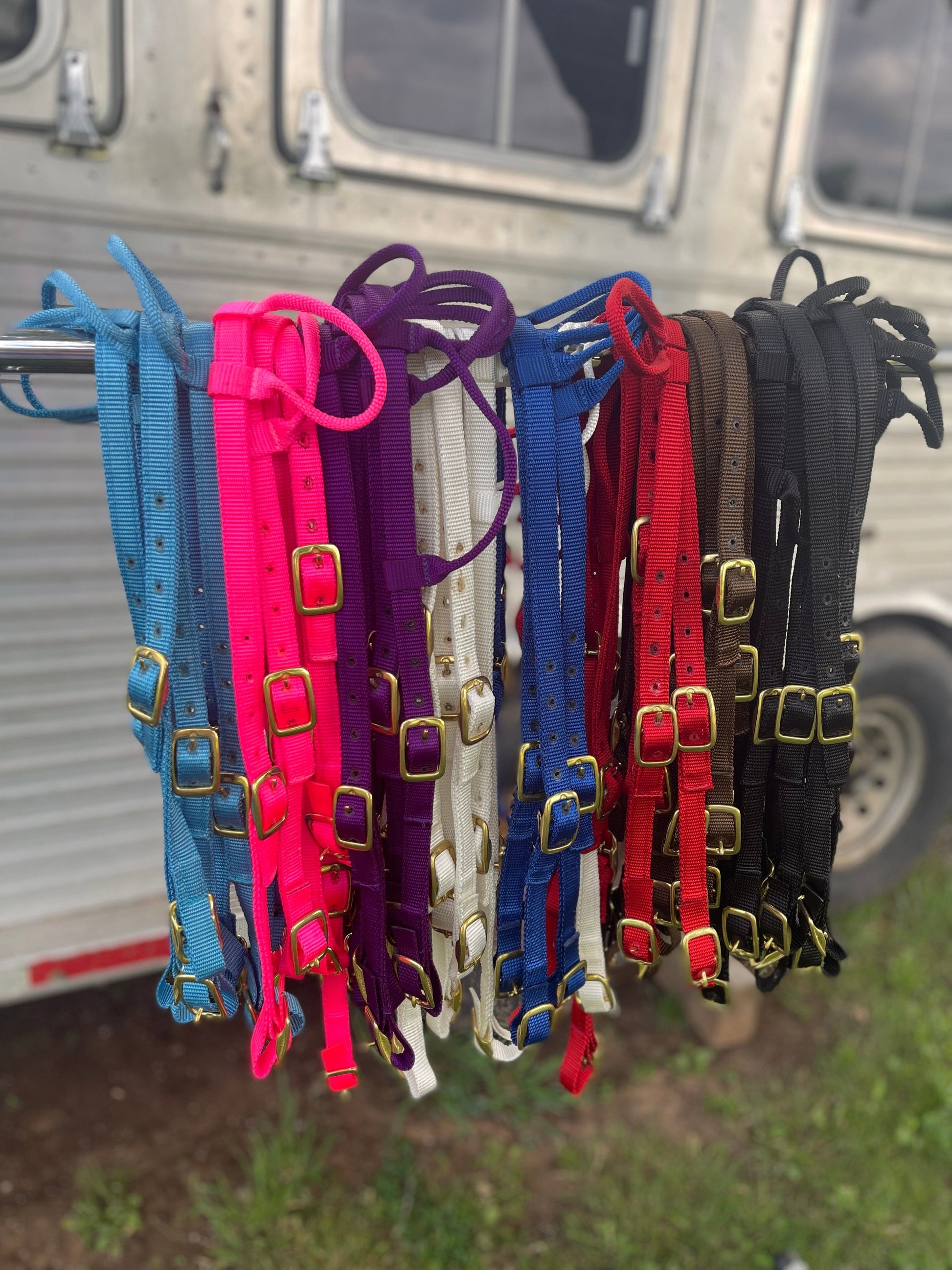 Top Quality One Ear double-ply nylon Quick-adjust with buckle bottom to avoid the extra rattle caused by metal-to-metal on bits. Solid Brass hardware eliminates the chances of rusting. In-stock colors are READY TO SHIP.
