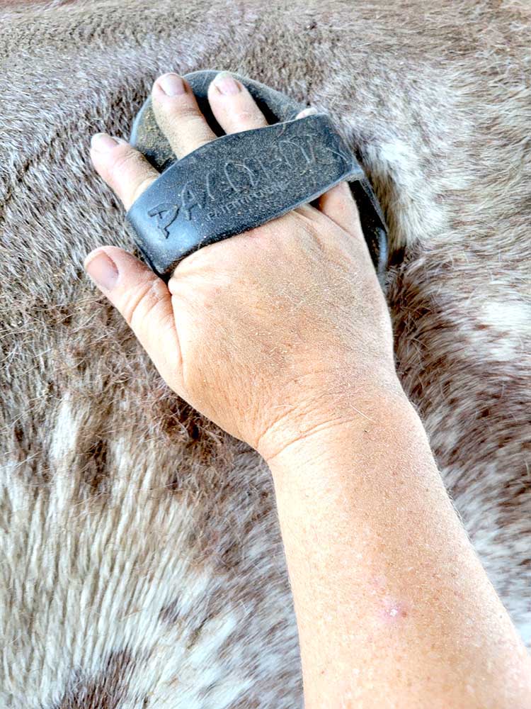 The size of this curry comb fits perfectly in your hand. It stays firmly in place while currying your horse in the circular motion that gets dirt and hair up to the surface to brush away. The rubber material is soft and flexible to use comfortably on your horse’s head, body and legs. It’s also ideal for bathing.