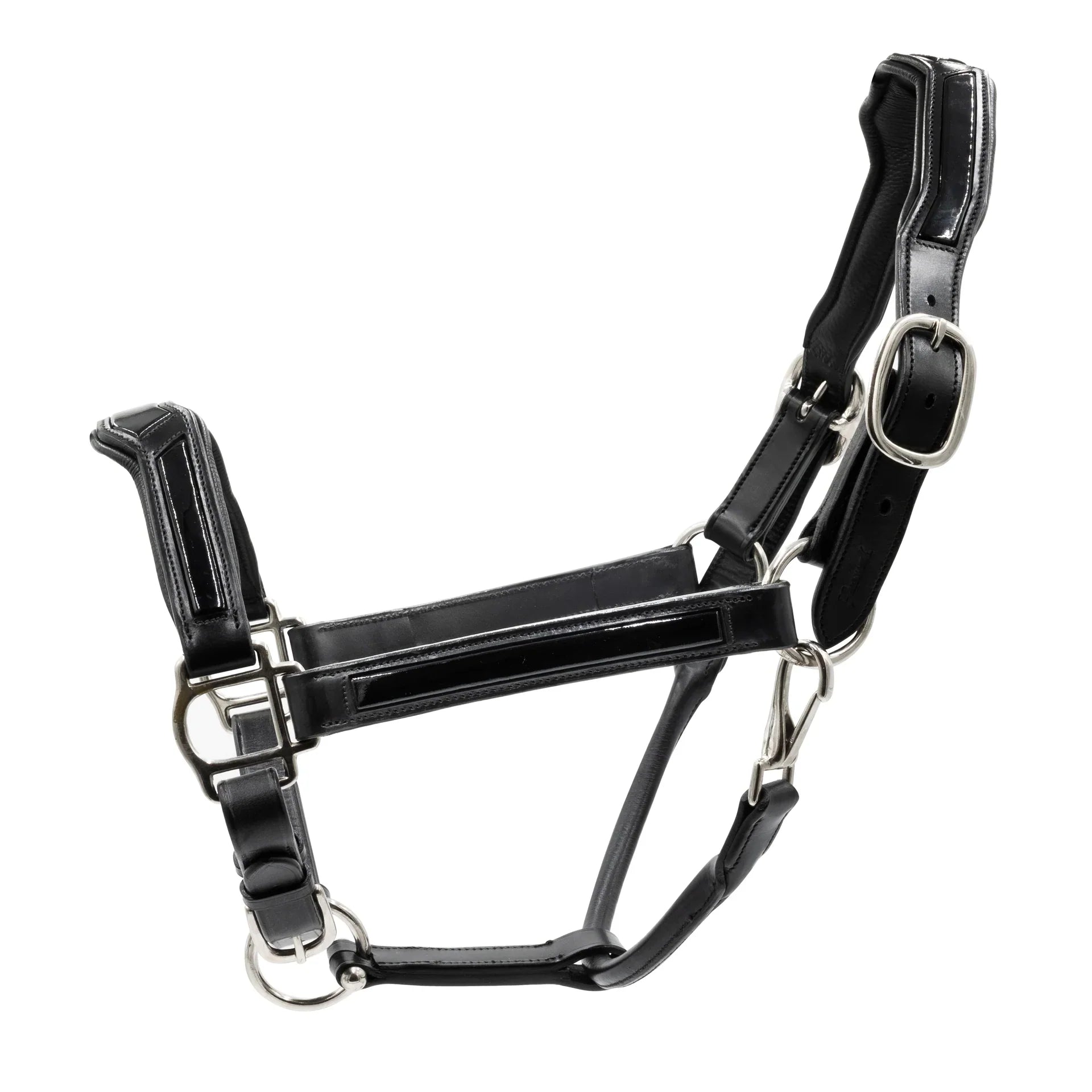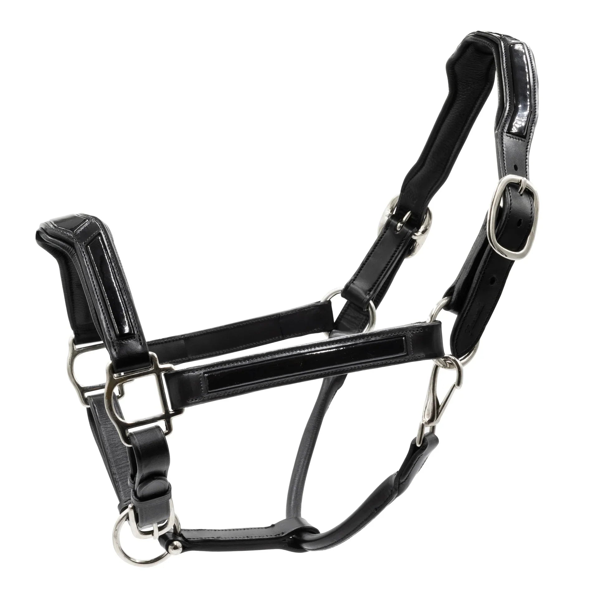 Your precious horse deserves a gorgeous and stylish patent leather halter. This Grewal Equestrian Patent Leather Halter is made with top-grain quality supple leather that is designed to not only look fabulous but to last a lifetime! It's a beautiful padded design with a throat latch clip, adjustable noseband, and a replaceable breakaway crown. The soft padding on the crown and nose will keep your horse comfortable while looking elegant!