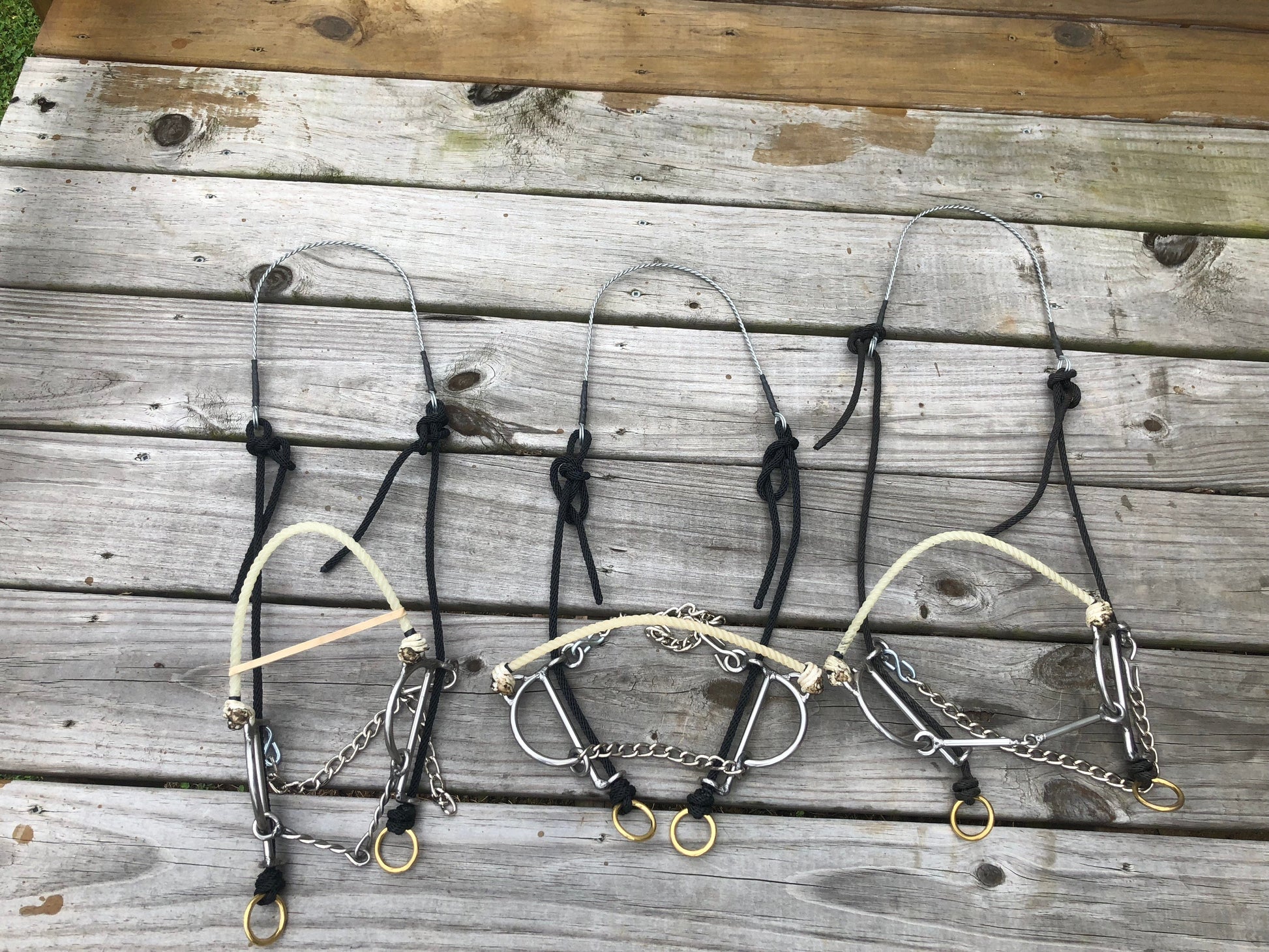 The reverse gag along with siding sides equals a double gag with the noseband and curb chain on this bit to help control the hind quarters. Great bit for bend& and collection.