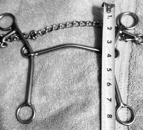 This bit offers a 6" shank with little over 8" overall. No gag. The turned back top gives the bit balance and gets the curb chain out of the way so that it does not pinch. This bit provides quick response with extra lift and more collection in the turn.