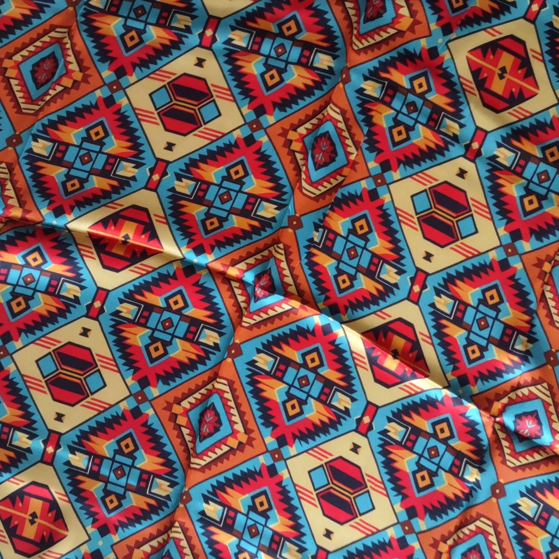 Silk Wild Rag Red, Yellow, Blue Aztec by Double B Wild Rags