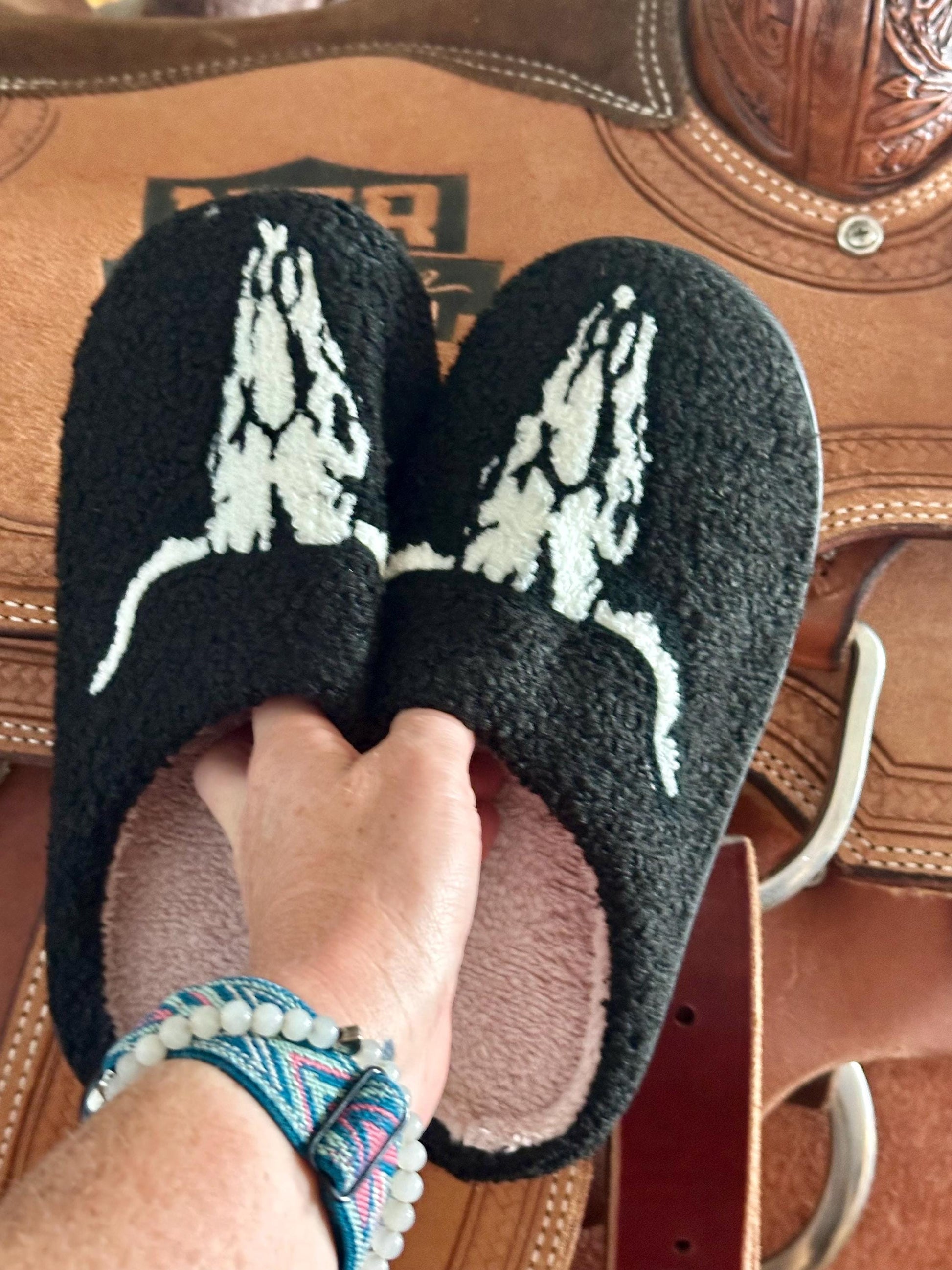 Longhorn Skull Cozy Slippers | Western Fall & Halloween Loungewear