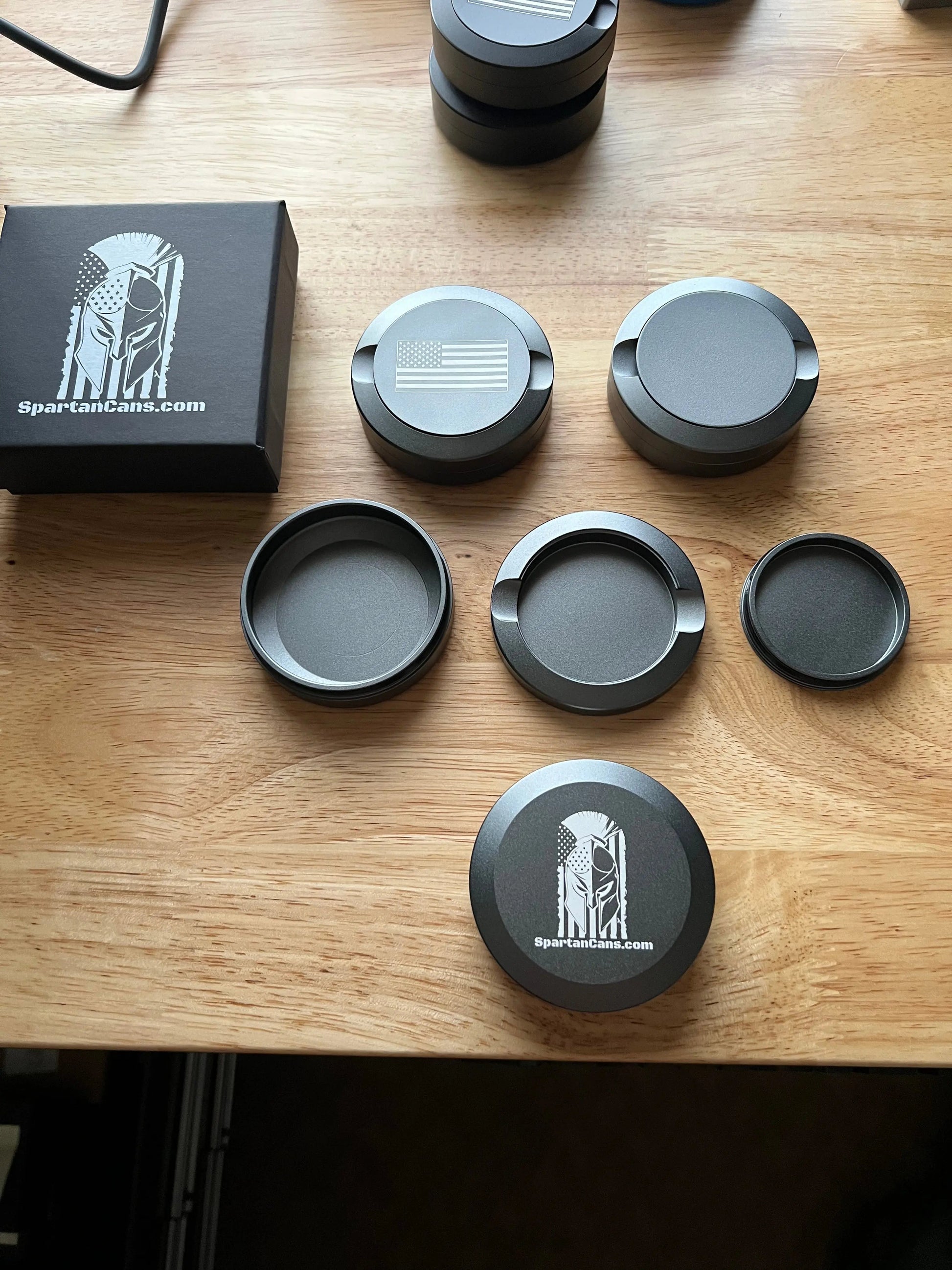 Each can features a sleek, laser-engraved Spartan Designs logo on the bottom and offers three customizable lid options, plus flat rate shipping of $4.99 on all cans and free shipping with orders over $50 (US orders), (All Canada Orders, shipping will be determined via current rates due to Duties/Import/Tariff schedules at the time) :