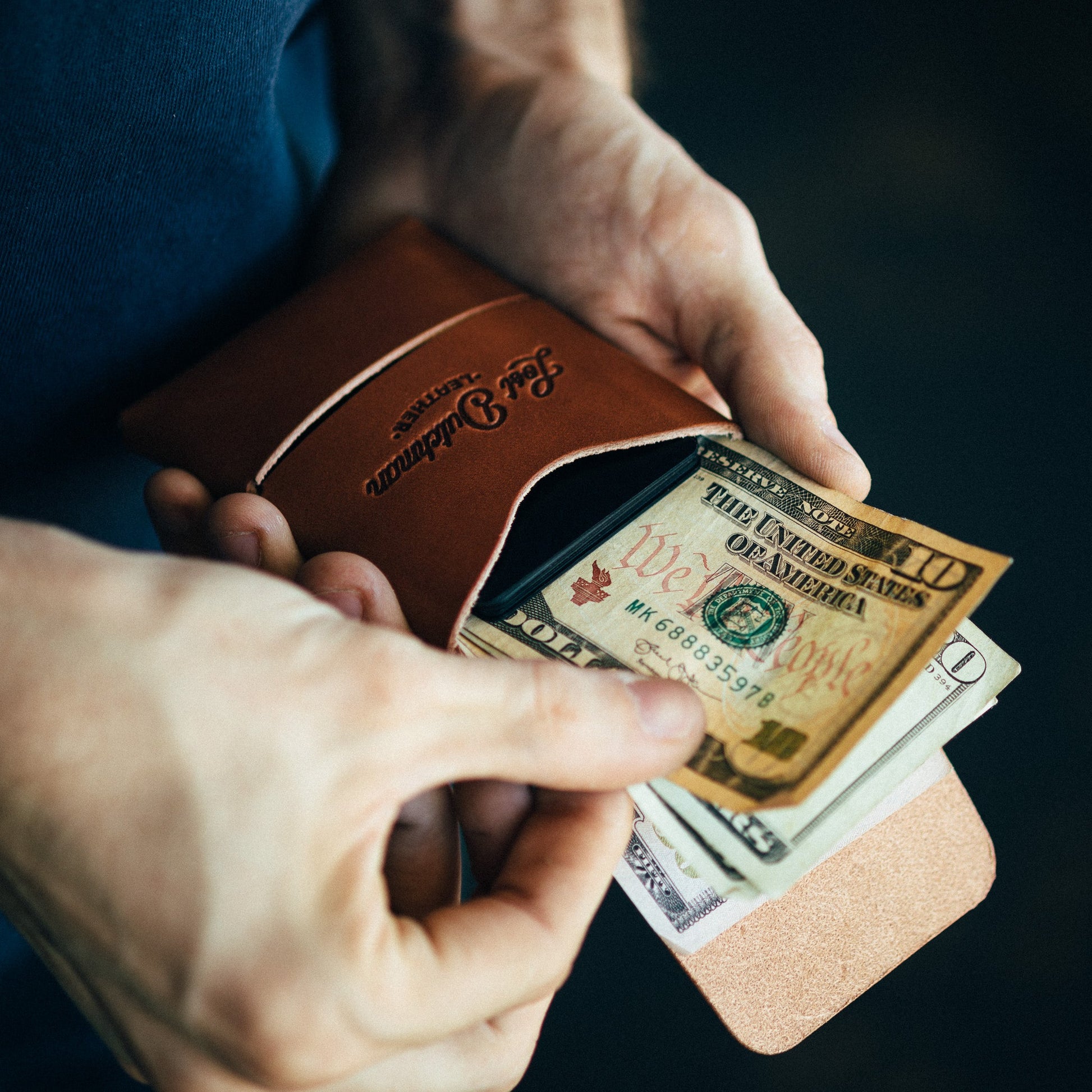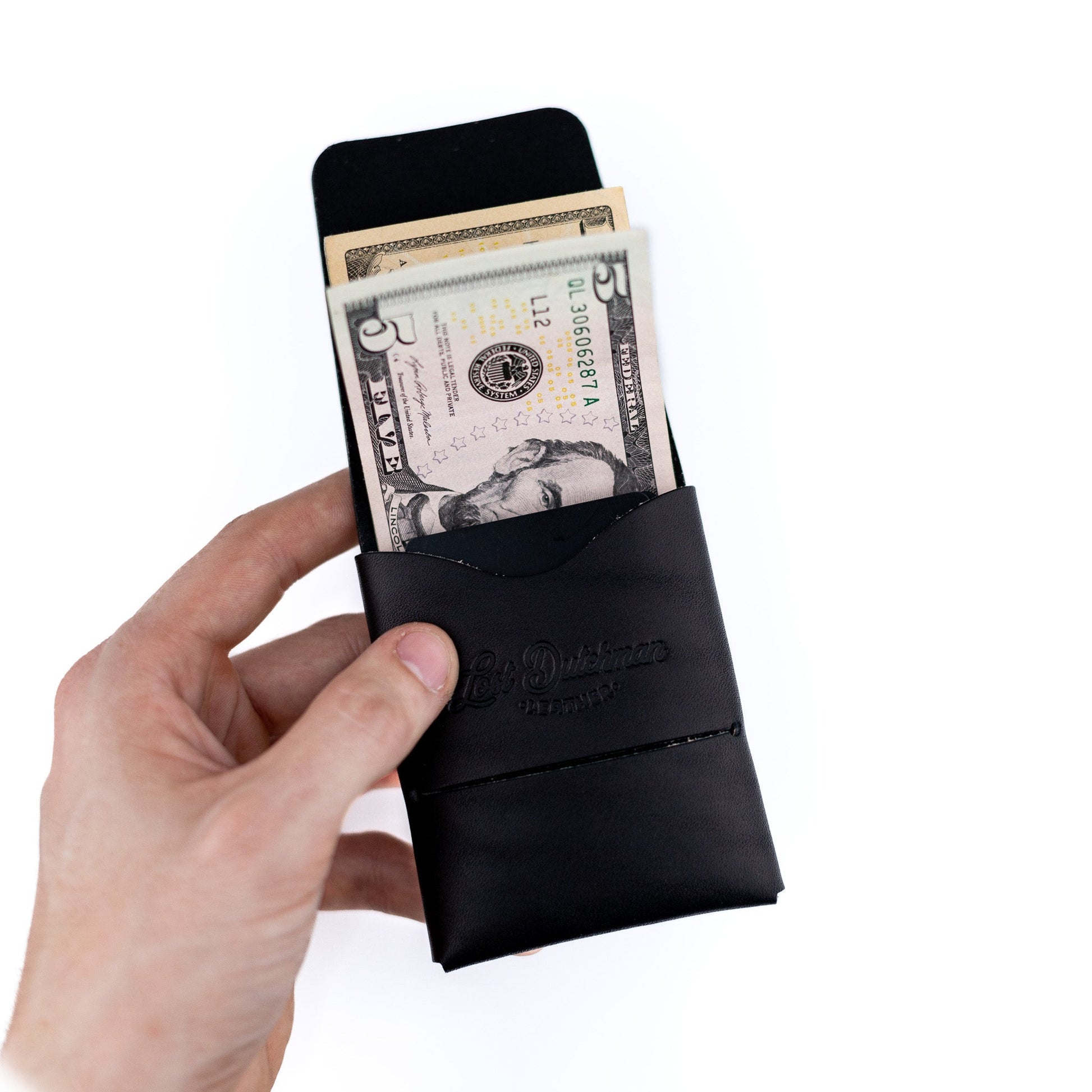 Designed to carry up to 12 cards and cash in one main compartment while keeping a super slim profile. The back of the wallet features an "easy-access" pocket. Cash can be left unfolded and tucked in with the front flap to create a cash wrap. The front flap and tuck closure keeps the contents extra secure. We are extremely confident in our craftsmanship and this wallet comes with a Lifetime Guarantee.