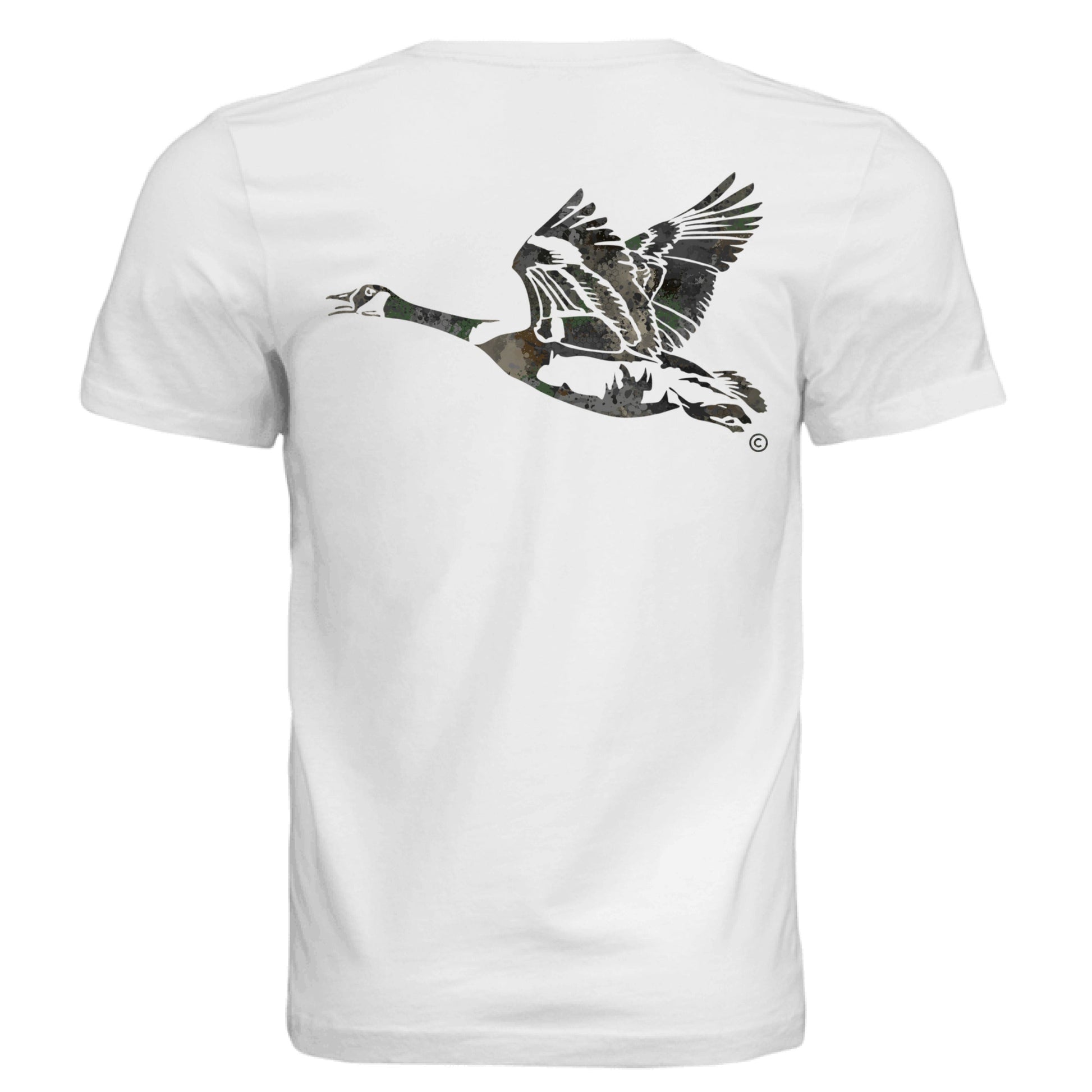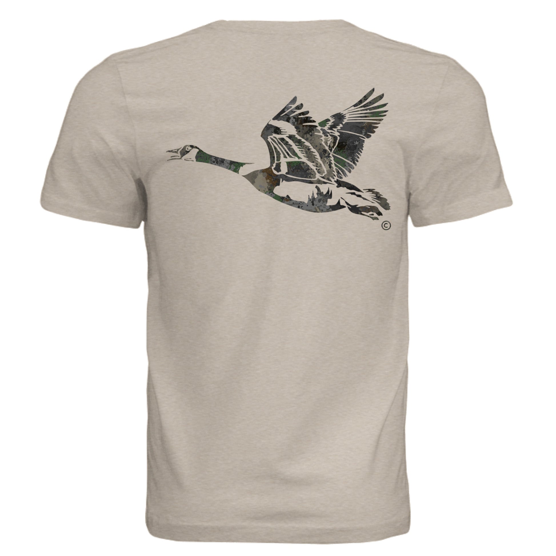 Bring the marsh to your wardrobe with the Timber Splash Burst Camo Goose T-Shirt. Designed for hunters and waterfowl enthusiasts, this shirt features a bold splash-style timber camo background with a powerful flying goose graphic front and center on the back. Crafted from a soft, durable cotton-poly blend, it offers all-day comfort whether you’re in the blind, scouting your next spot, or just showing your love for the hunt.