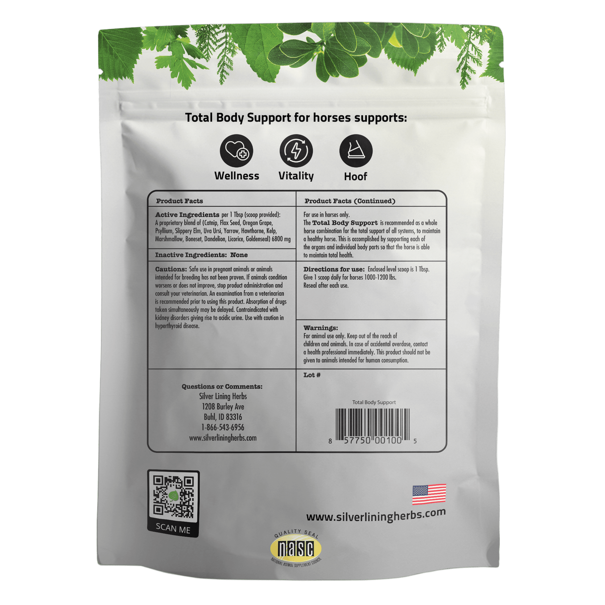 Right after good hay and fresh water, the Total Body Support for Horses is a must-have to maintain a whole healthy horse. Rather than riding a roller coaster of “problem – fix – problem – fix” our smartest customers keep their horses on year-round.