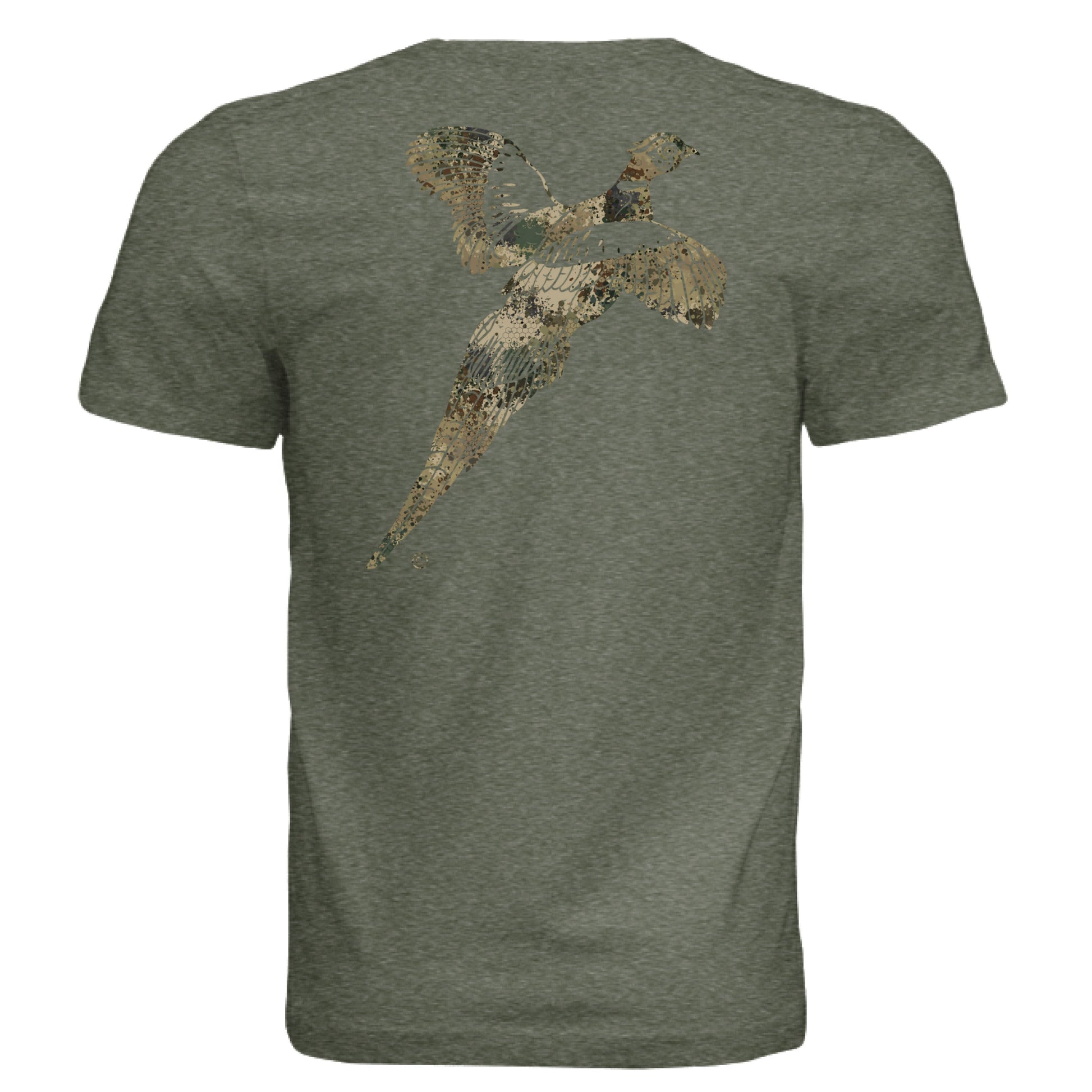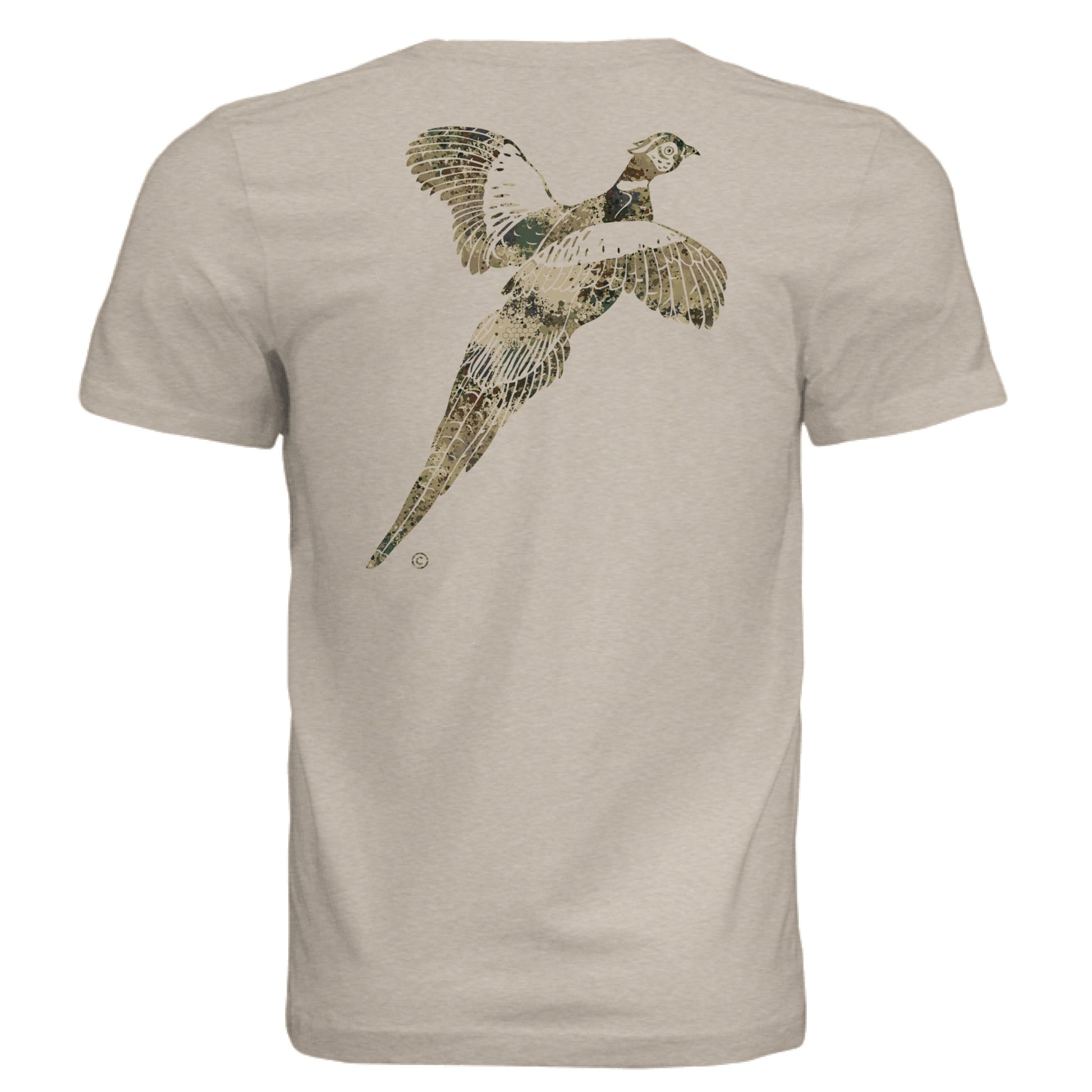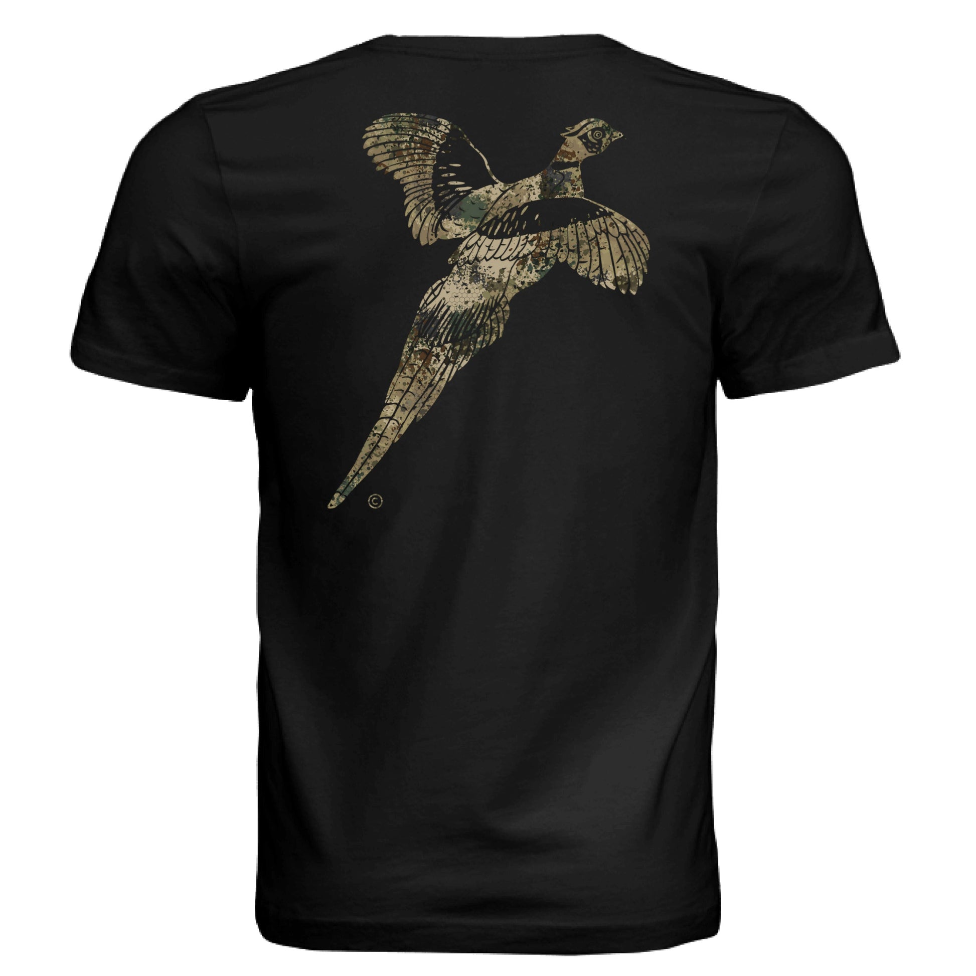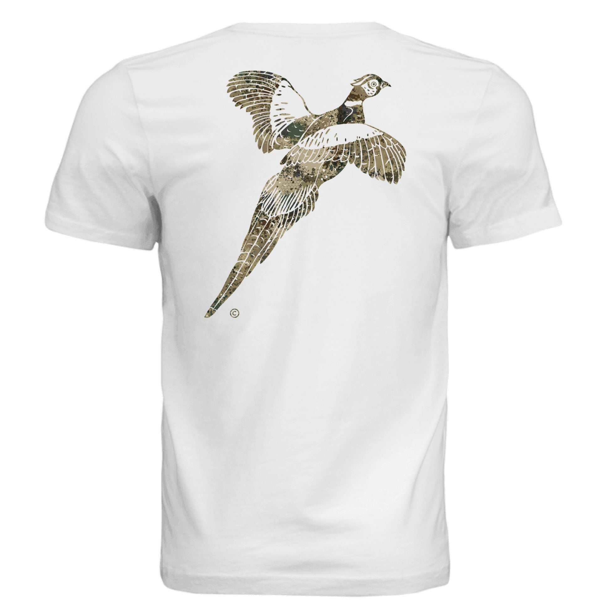 Step into the uplands with the Upland Splash Burst Camo Pheasant T-Shirt. Featuring a rugged splash camo pattern inspired by open fields and tall grasses, paired with a vivid pheasant graphic, this shirt captures the thrill of the flush and the call of the wild. Made from a soft, breathable cotton-poly blend, it delivers comfort and durability whether you’re stalking birds, walking the fields, or relaxing after a successful hunt. Designed for upland hunters who live for the chase.