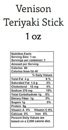 Buffalo Bob's Venison Teriyaki Jerky Stick is made from premium New Zealand farm-raised venison, grazing naturally year-round without antibiotics or hormones. Packed with clean protein and a savory teriyaki flavor, it’s the perfect on-the-go snack!
