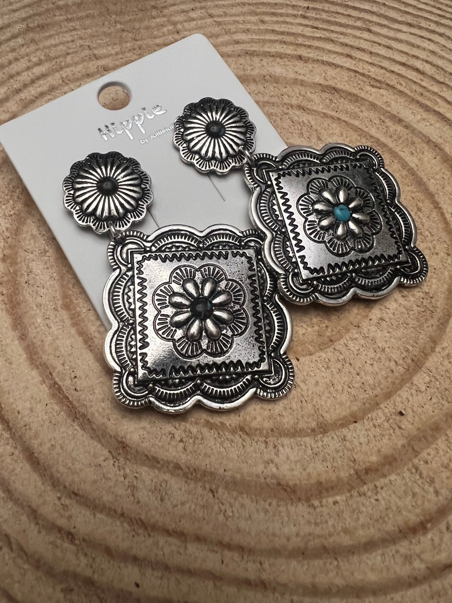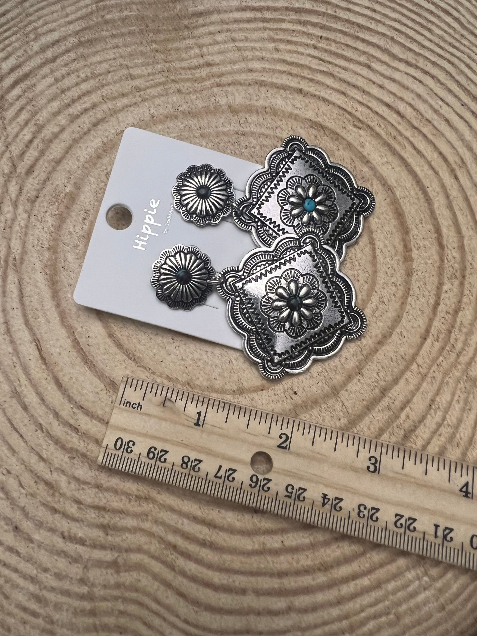Western Concho Dangle Earrings with multi color stones