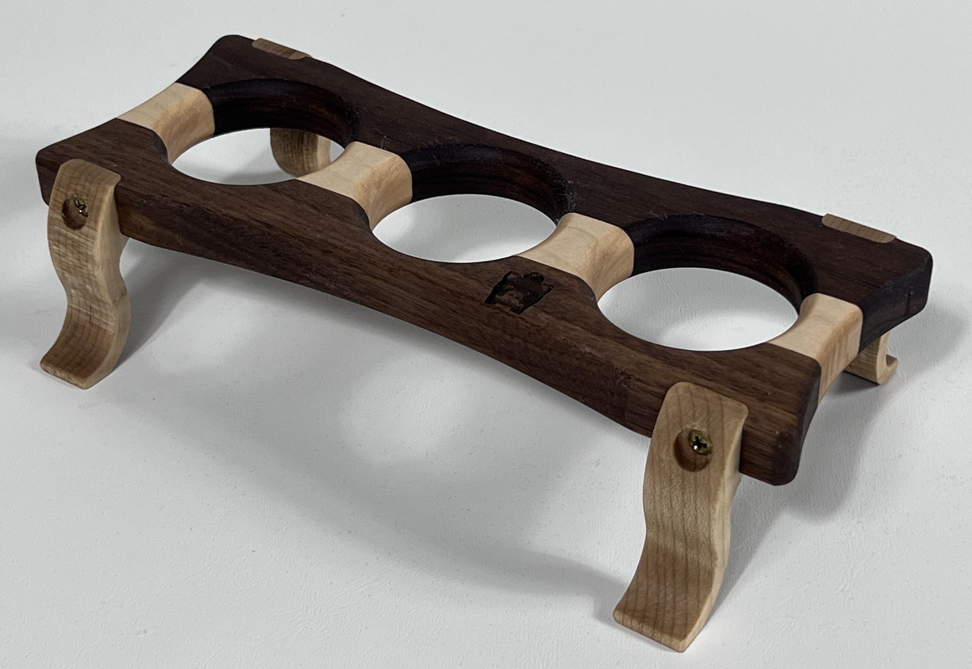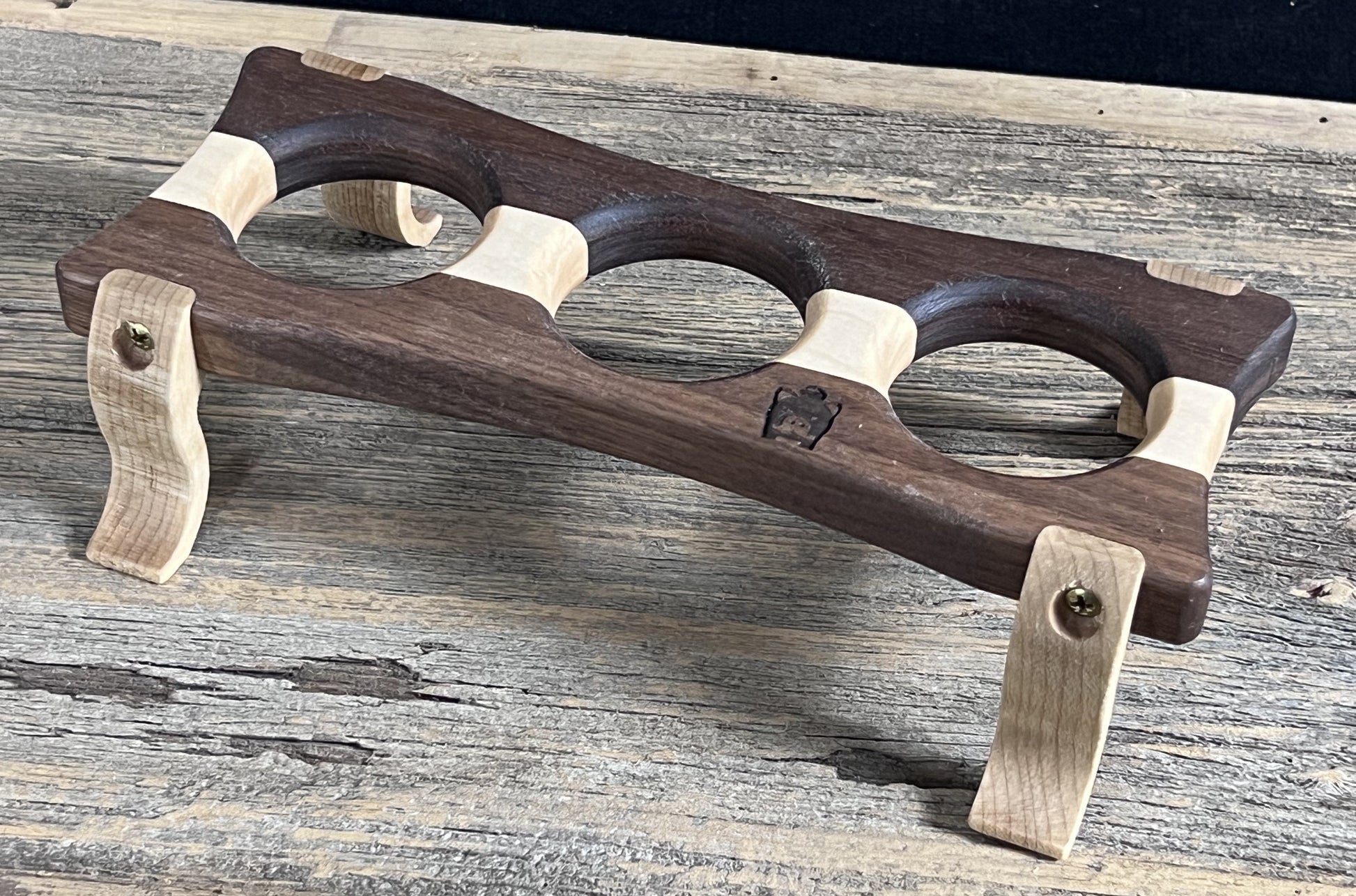 Crafted from premium hand selected Black Walnut and Curly Maple.