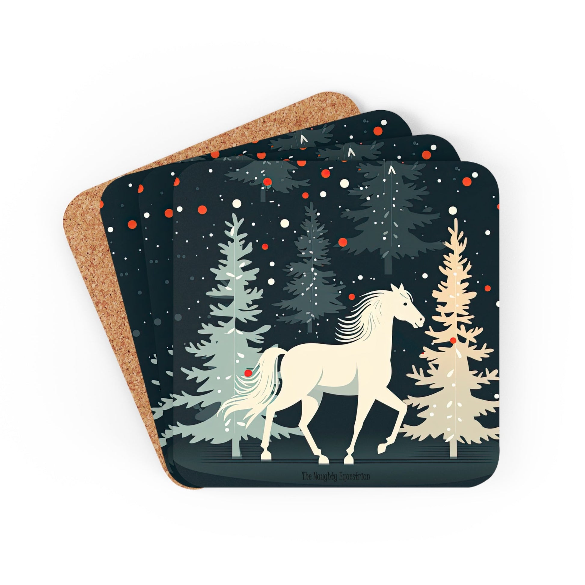 Y'all love an equestrian Christmas? Treat your horse loving friends to our cute and colorful White Horse Holiday Christmas Coaster Set, with our stunning white horse on the front.