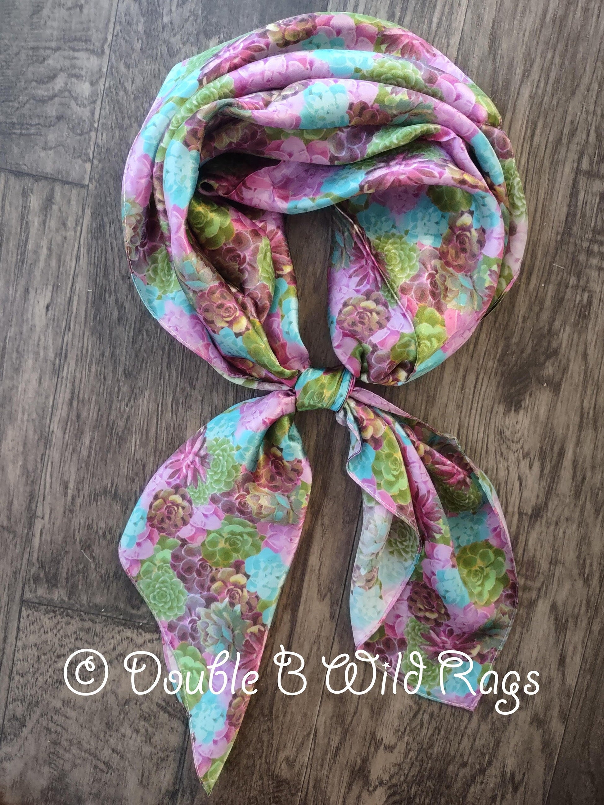 Wild Rag 100% SILK 833 SUCCULENTS Green, Purple, Turquoise Cowboy Western Neck Scarf Bandanna by Double B Wild Rags