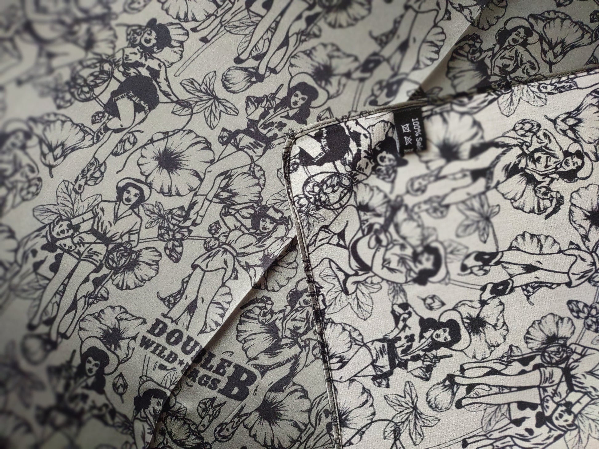 Wild Rag 100% SILK Dark Grey Pin Up Cowgirls and Hollyhock flowers Cowboy Western Neck Scarf Bandanna by Double B Wild Rags