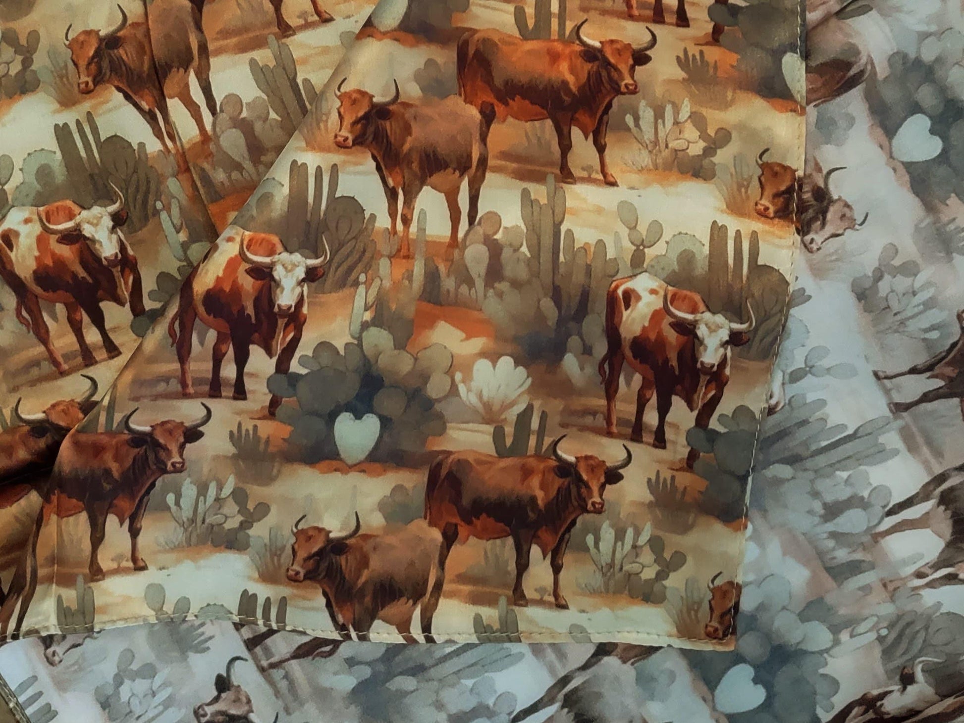 Wild Rag 100% SILK Desert Cattle and Cactus Cowboy Neck Scarf Bandanna by Double B Wild Rags