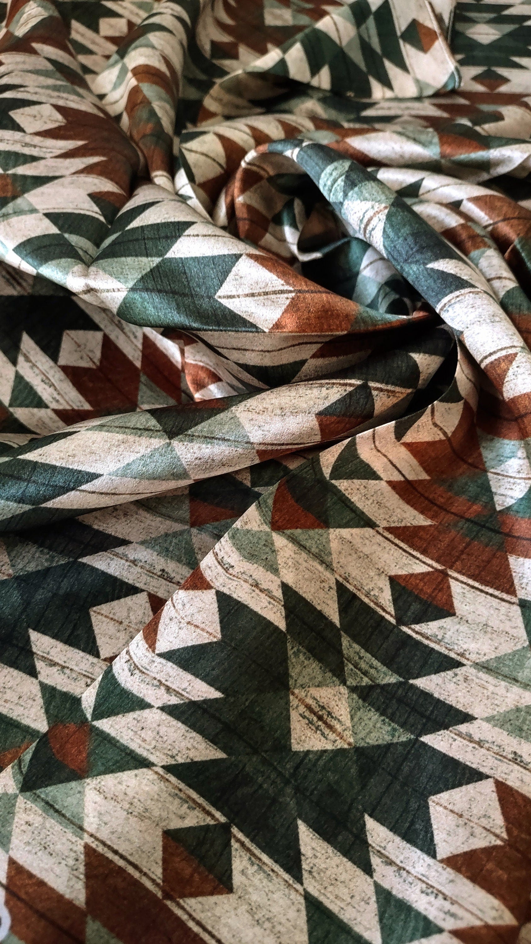 Wild Rag 100% SILK Green and Brown Distressed Aztec Cowboy Western Neck Scarf Bandanna by Double B Wild Rags