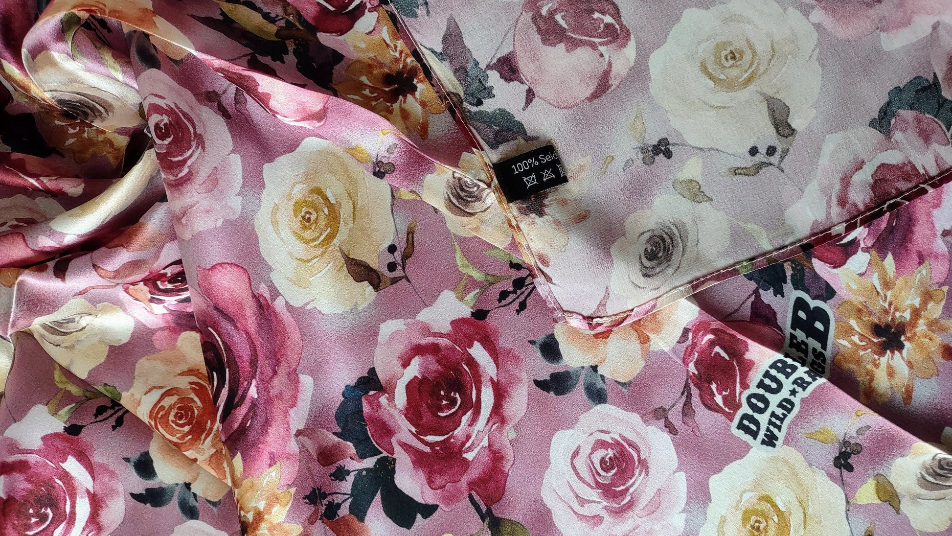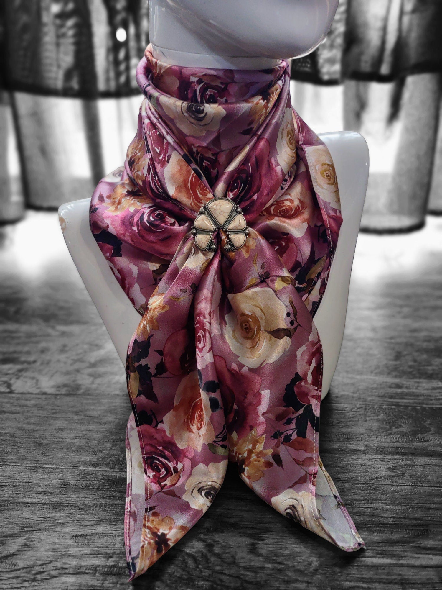 Wild Rag 100% SILK Lilac Purple Gold Floral Cowboy Western Neck Scarf Bandanna by Double B Wild Rags