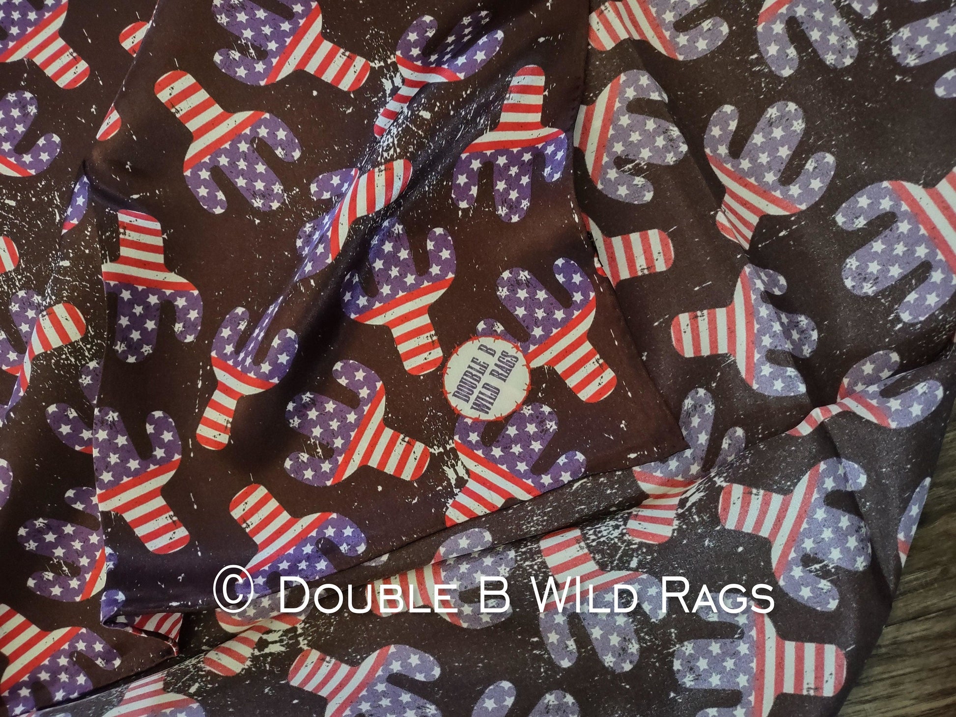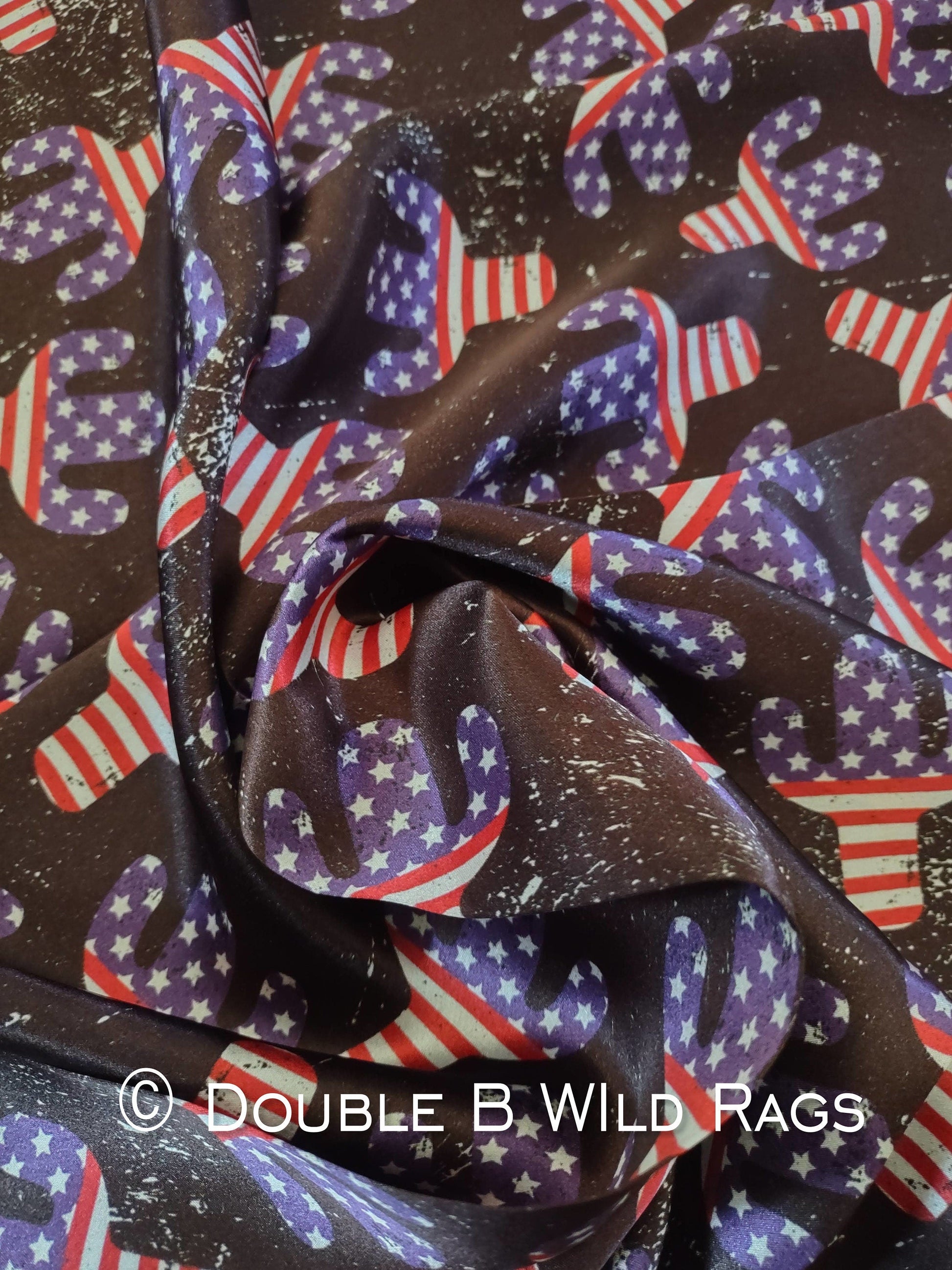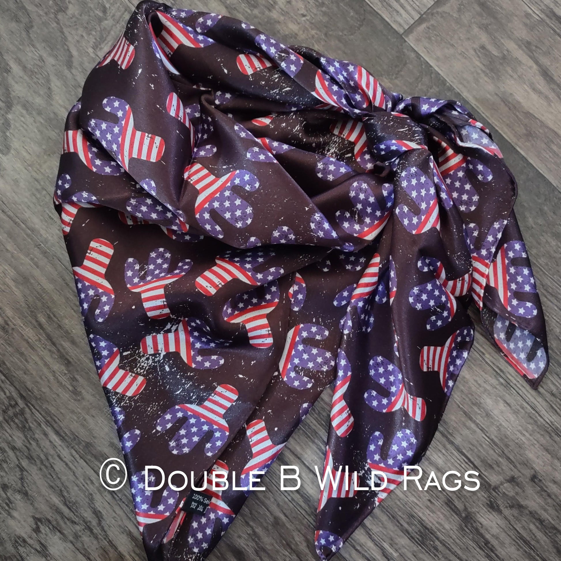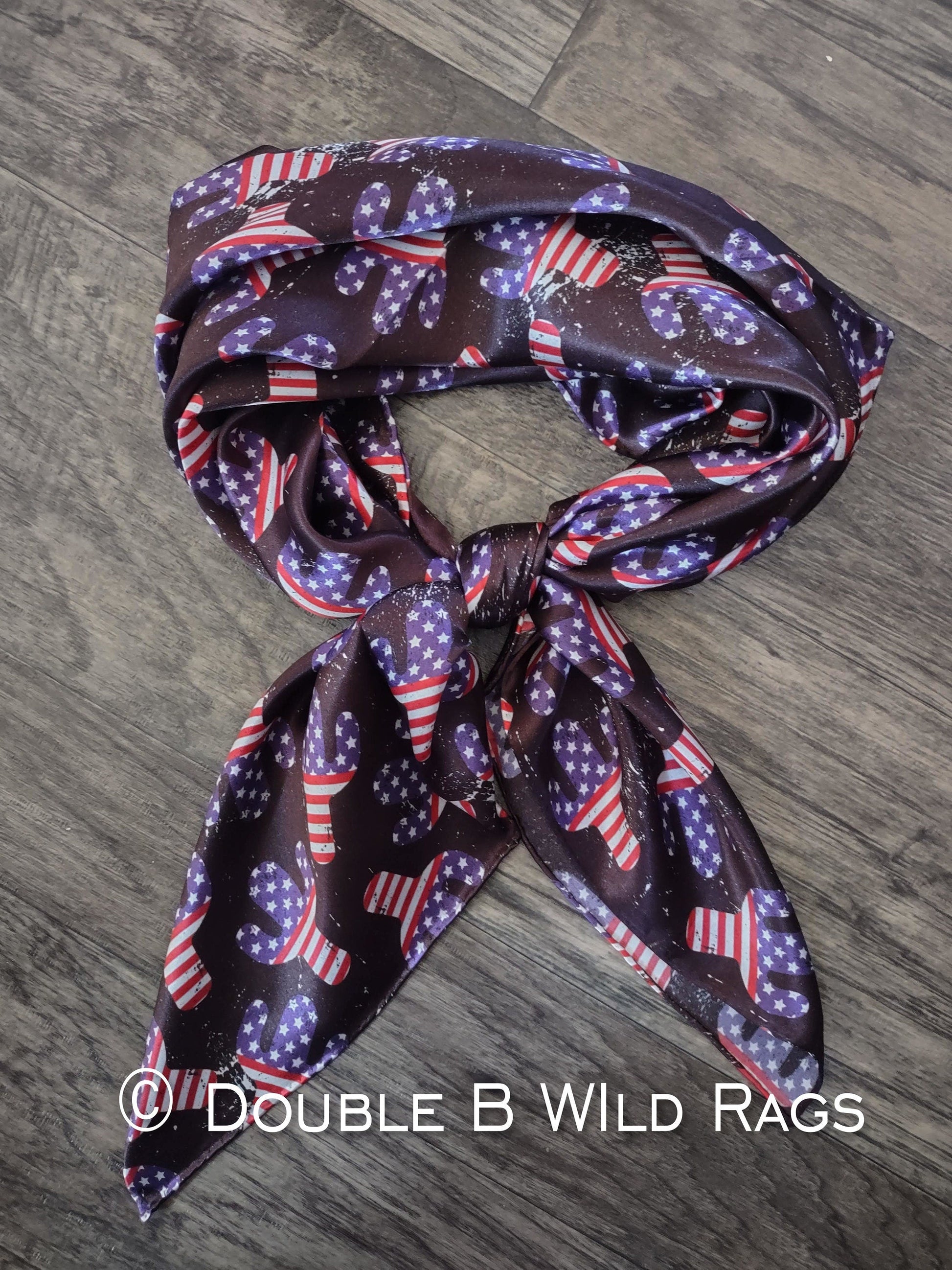 Wild Rag 100% SILK Patriotic Red White and Blue Cactus Cowboy Western Neck Scarf Bandanna by Double B Wild Rags